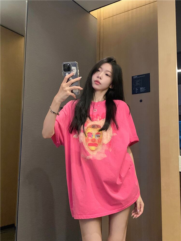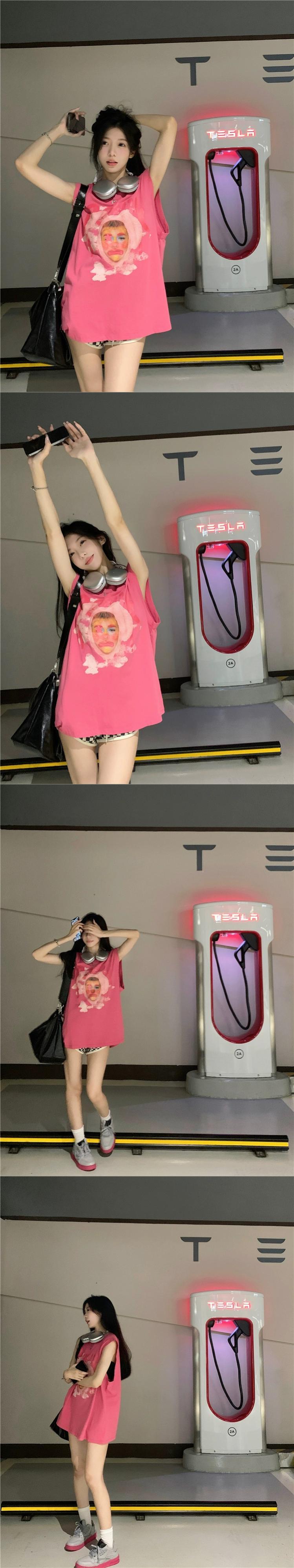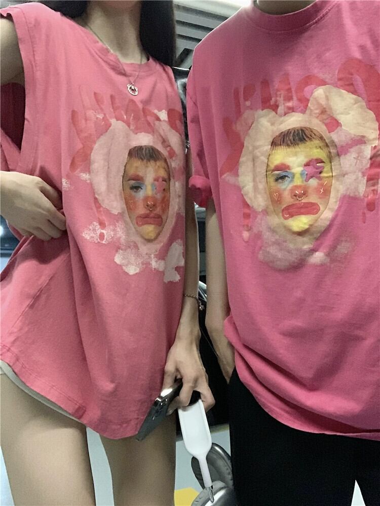 カップル衣装ピンクノースリーブ Tシャツ女性の夏のドーパミン着用アメリカンレトロ古いルーズベストトップ服 サマー 夏物 8571676746444527