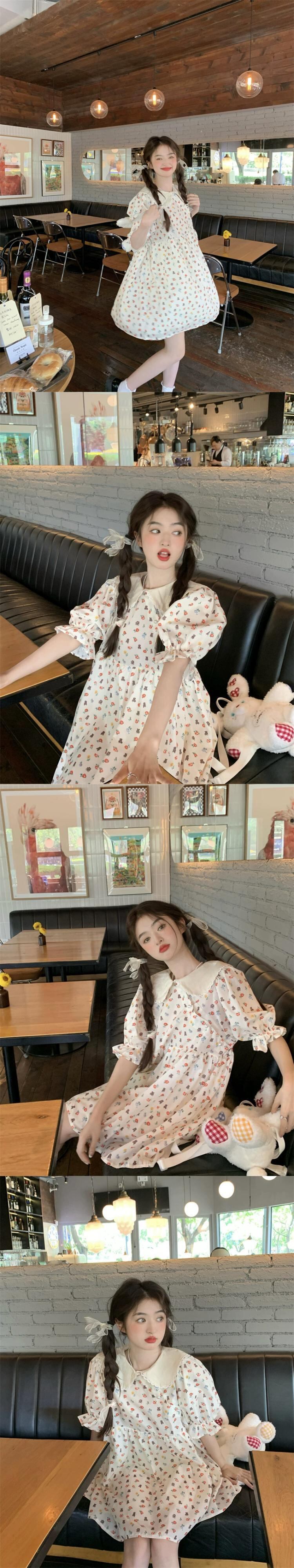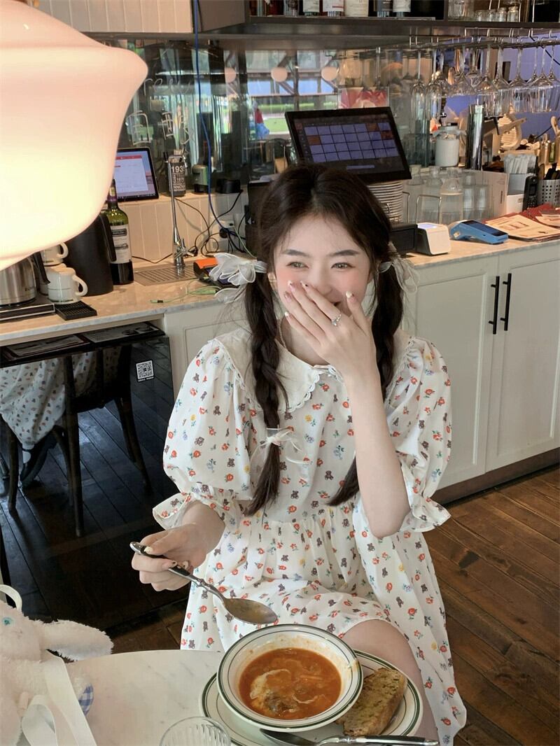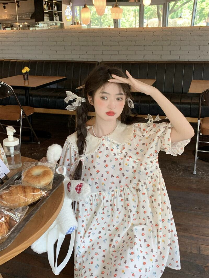 人形の襟の花柄ドレスの女性の夏デザインセンス貧乳は甘い初恋人形のスカートを着ます 大人ガーリー スウィート キュート カジュアル サマー 夏物 8571634804991604