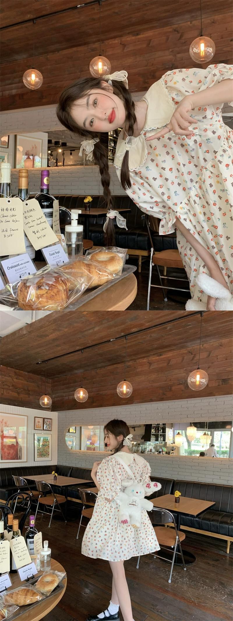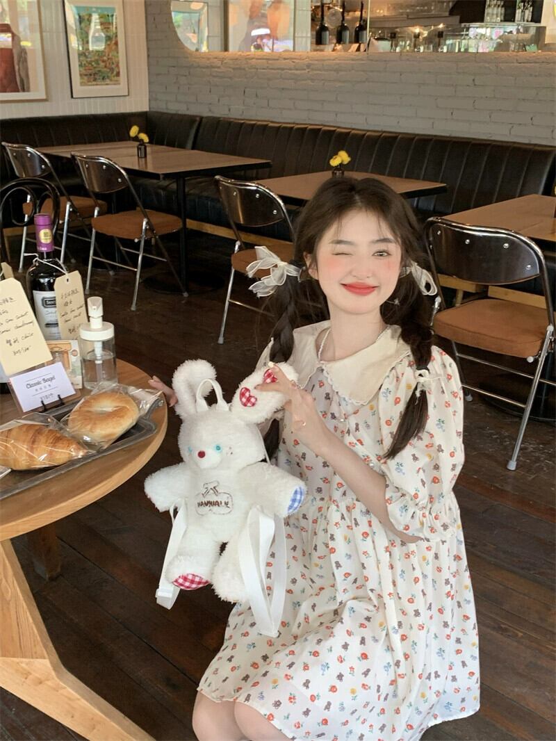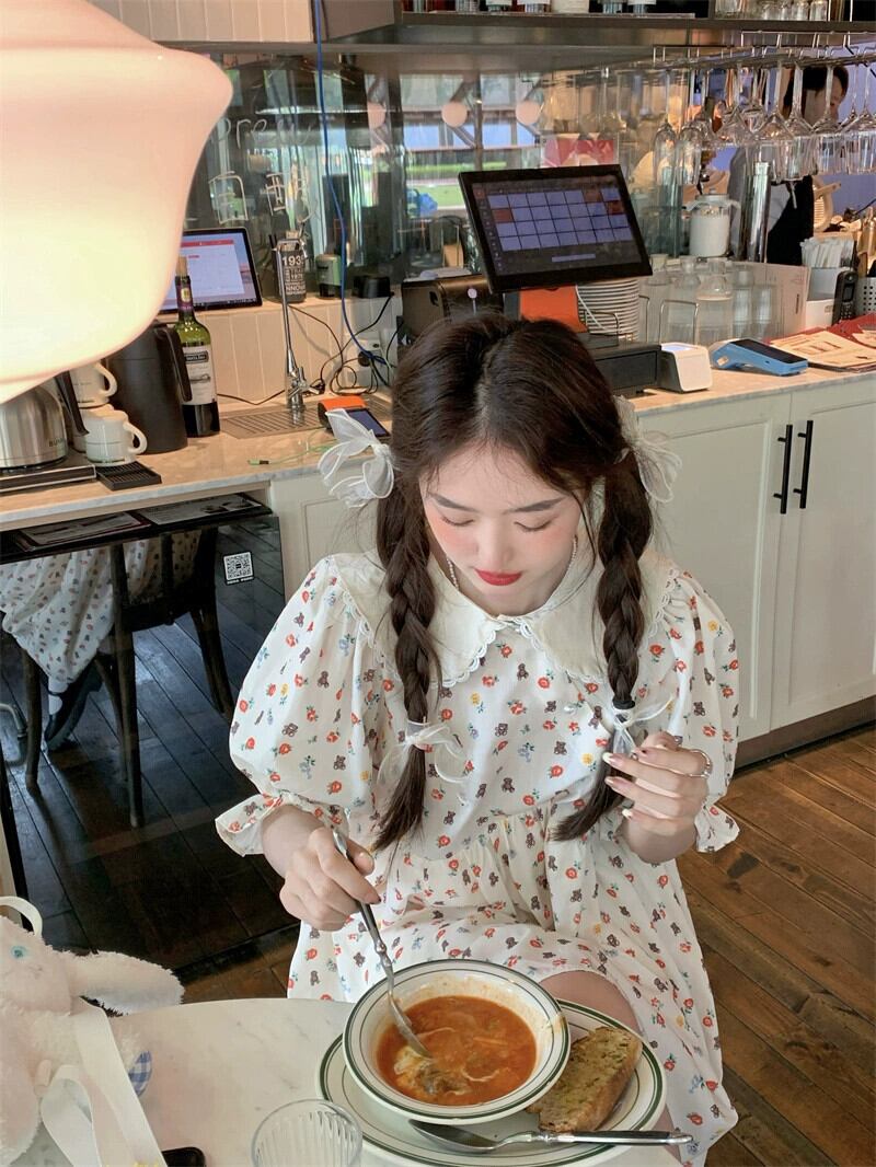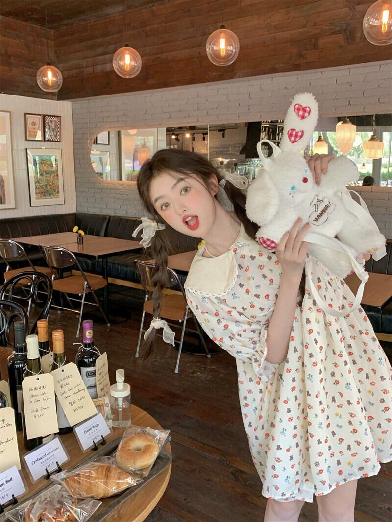 人形の襟の花柄ドレスの女性の夏デザインセンス貧乳は甘い初恋人形のスカートを着ます 大人ガーリー スウィート キュート カジュアル サマー 夏物 8571634804991604