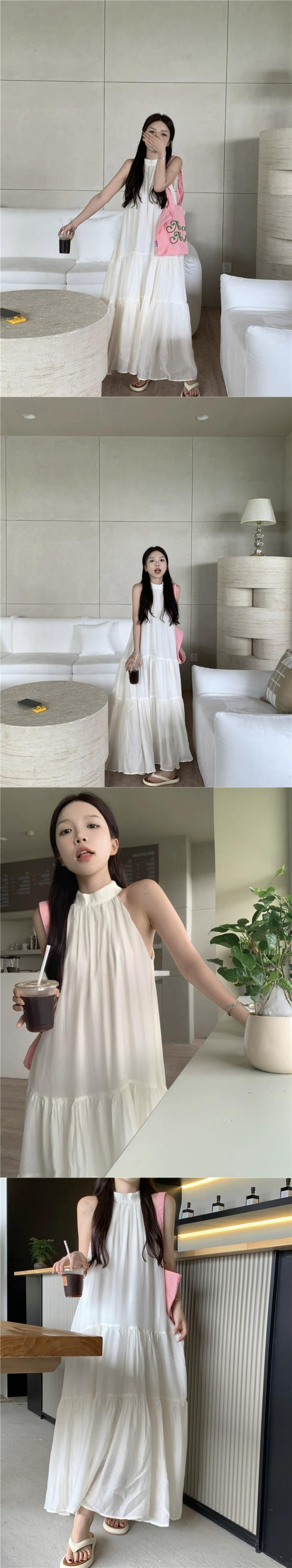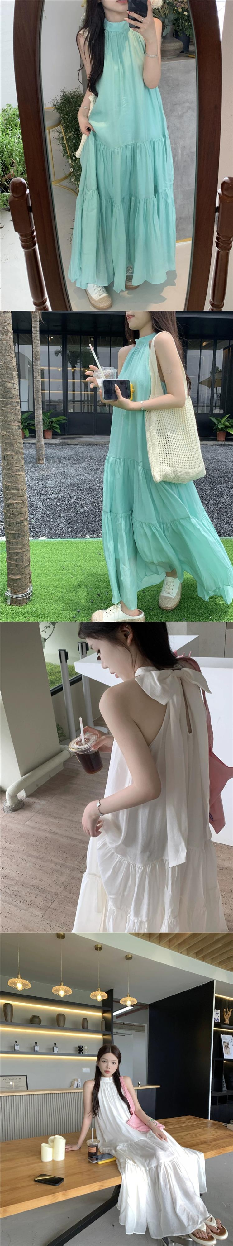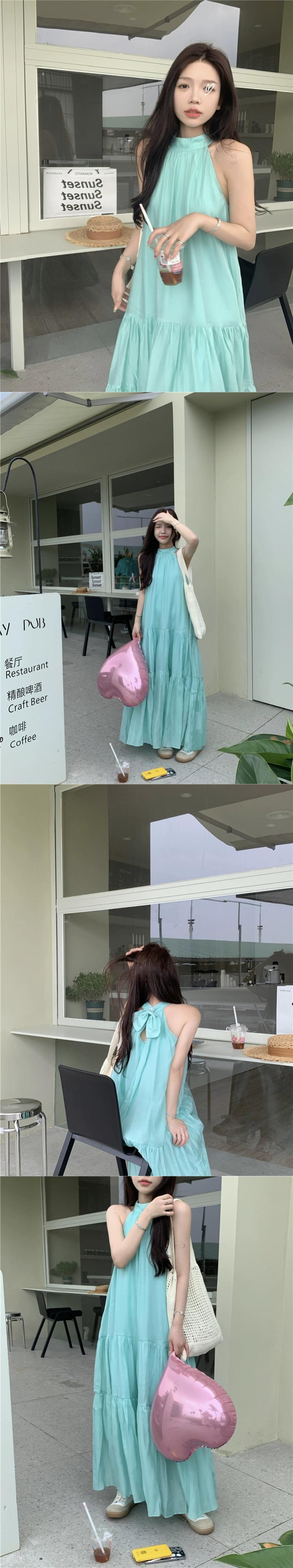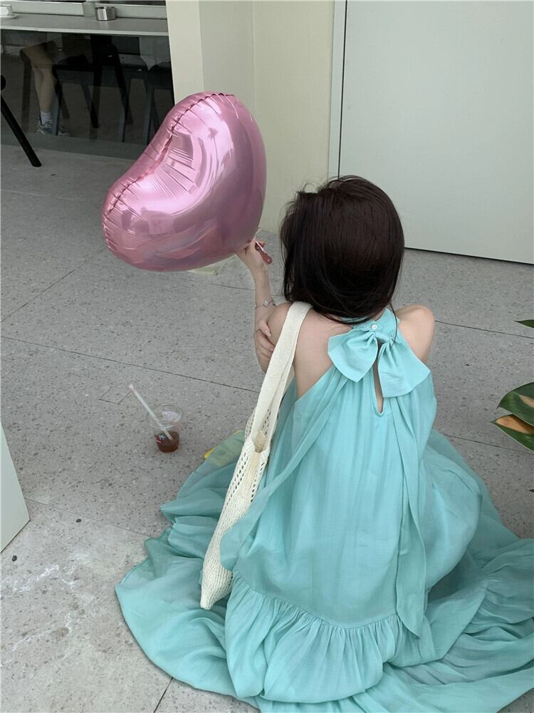 ちょう結びホルターネックドレス女性の夏フランスの優しい気質女神ファン海辺の休日スーパー妖精ロングスカート サマー 夏物 8571624013706551