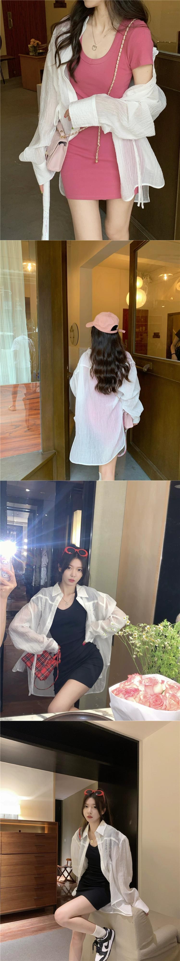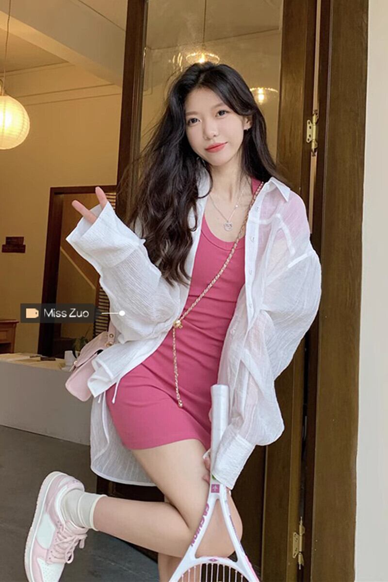 白い日焼け止めシャツジャケット女性の夏の薄いセクションとスカートカーディガンルーズカジュアル巾着長袖トップ ロング ホワイト サマー 夏物 8571654861059715