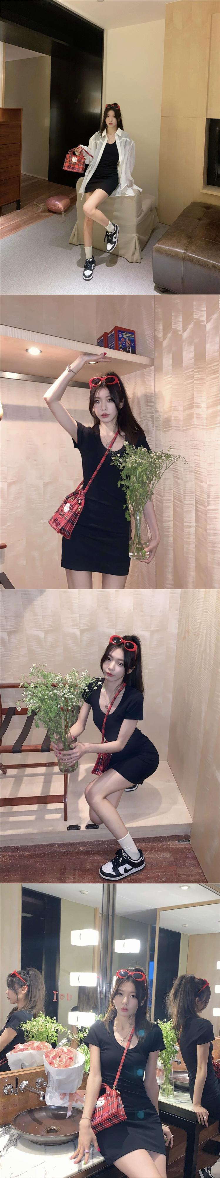 色:白のシャツ,バラのシャツ,ベリードレス,黒いドレス