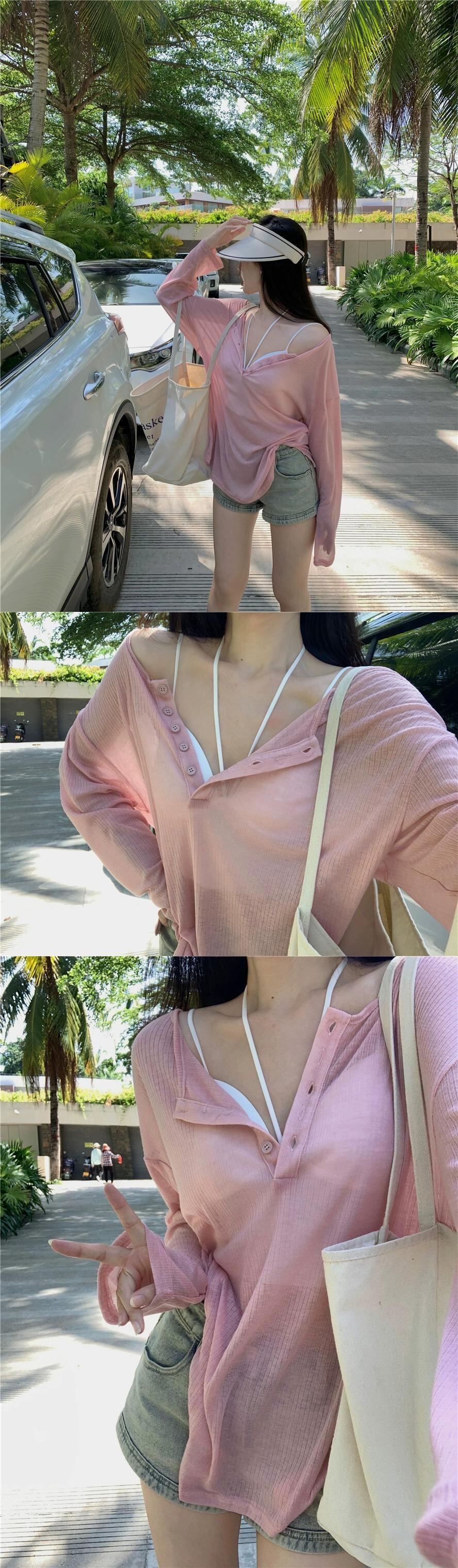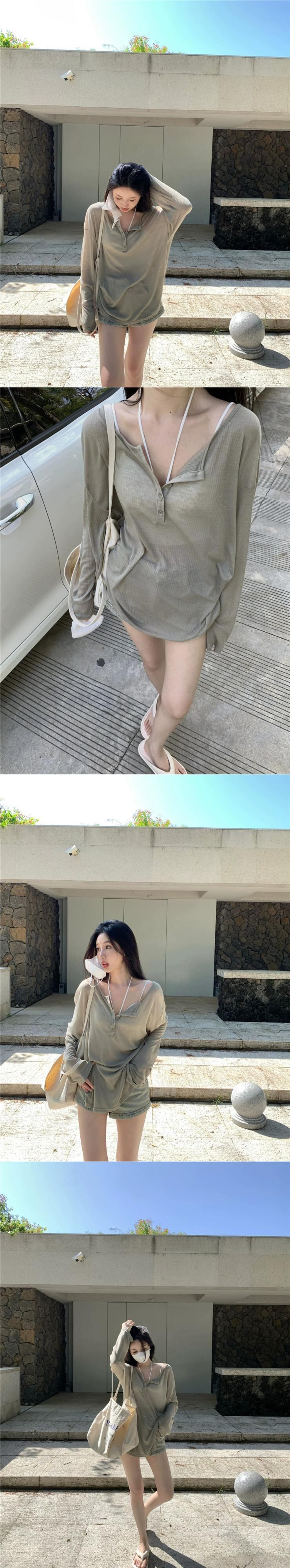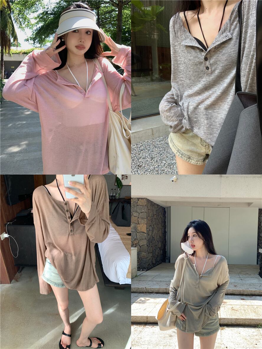 コーヒー色の日焼け止めブラウス女性の夏の薄いセクション長袖 Tシャツ 2023 新バージョン緩い怠惰な風服 ロング サマー 夏物 8571669649505355