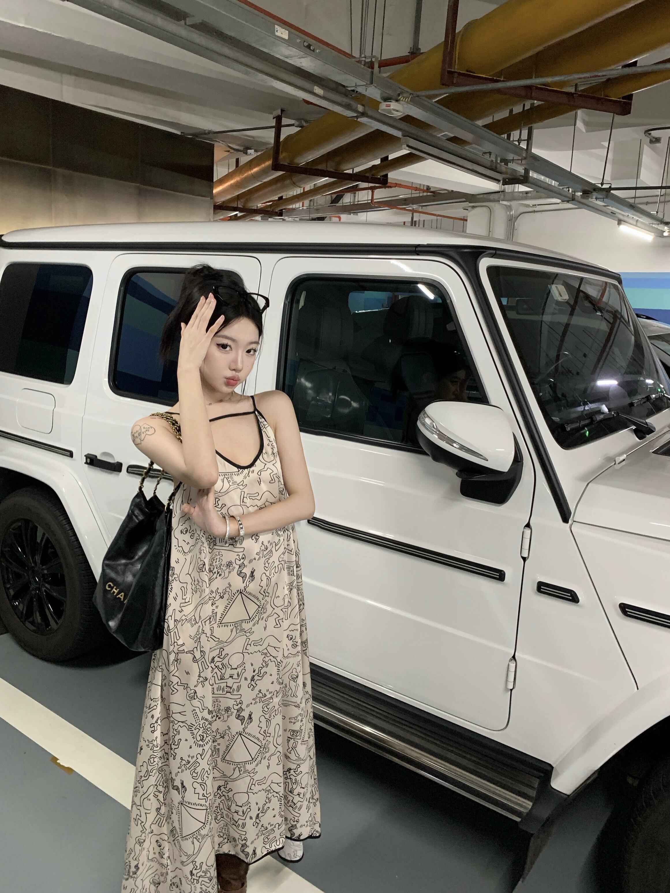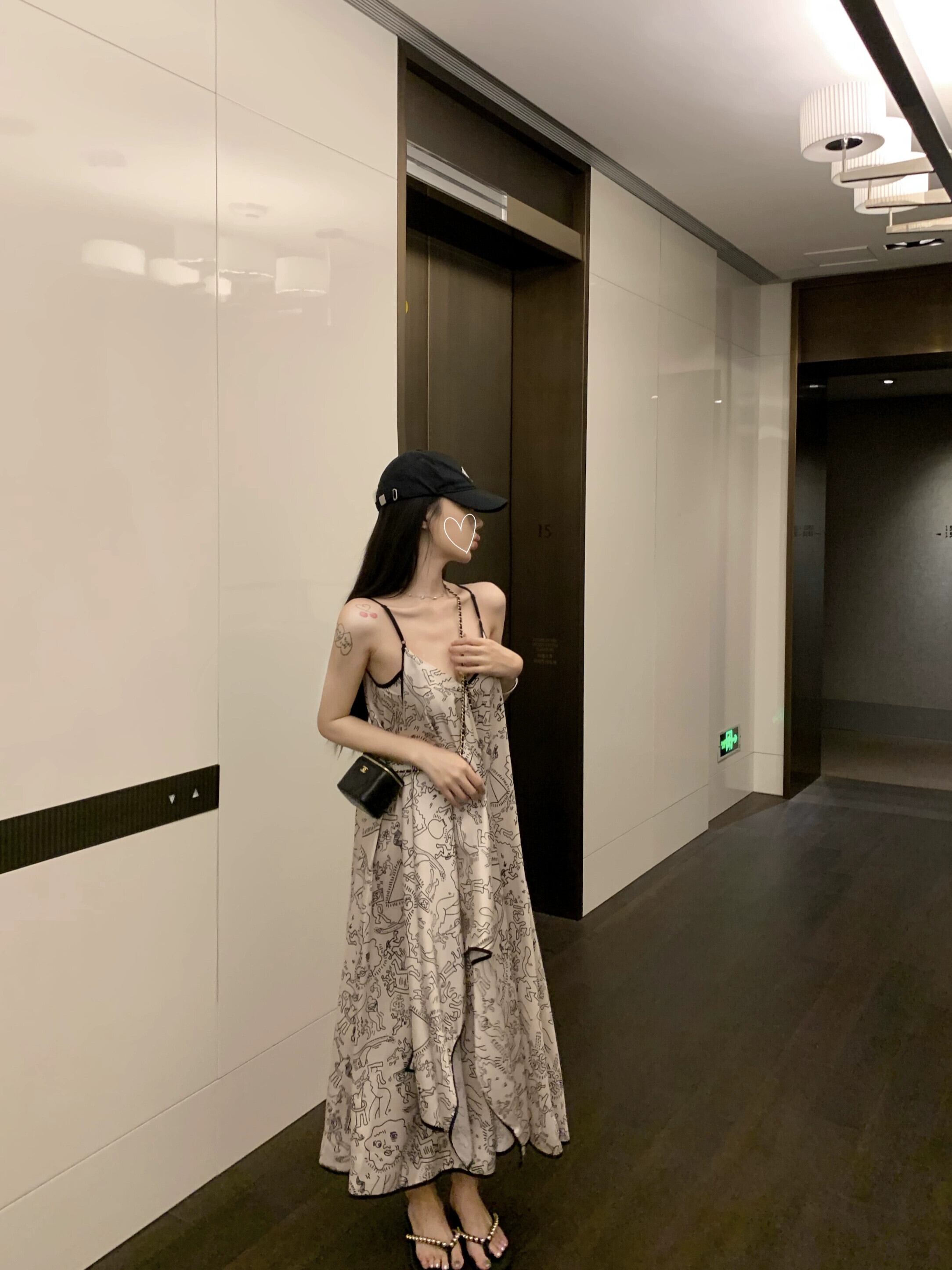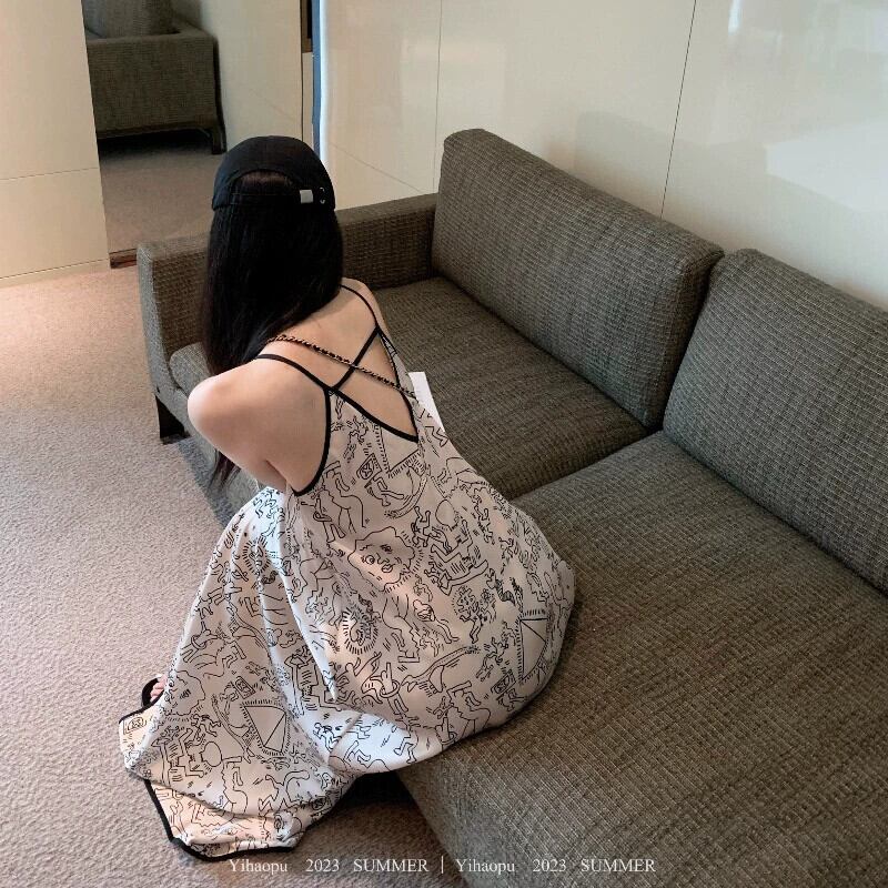 前後2着プリントサスペンダードレスレディース夏フレンチレトロルーズイレギュラーシーサイドホリデーロングスカート サマー 夏物 8571676458236723
