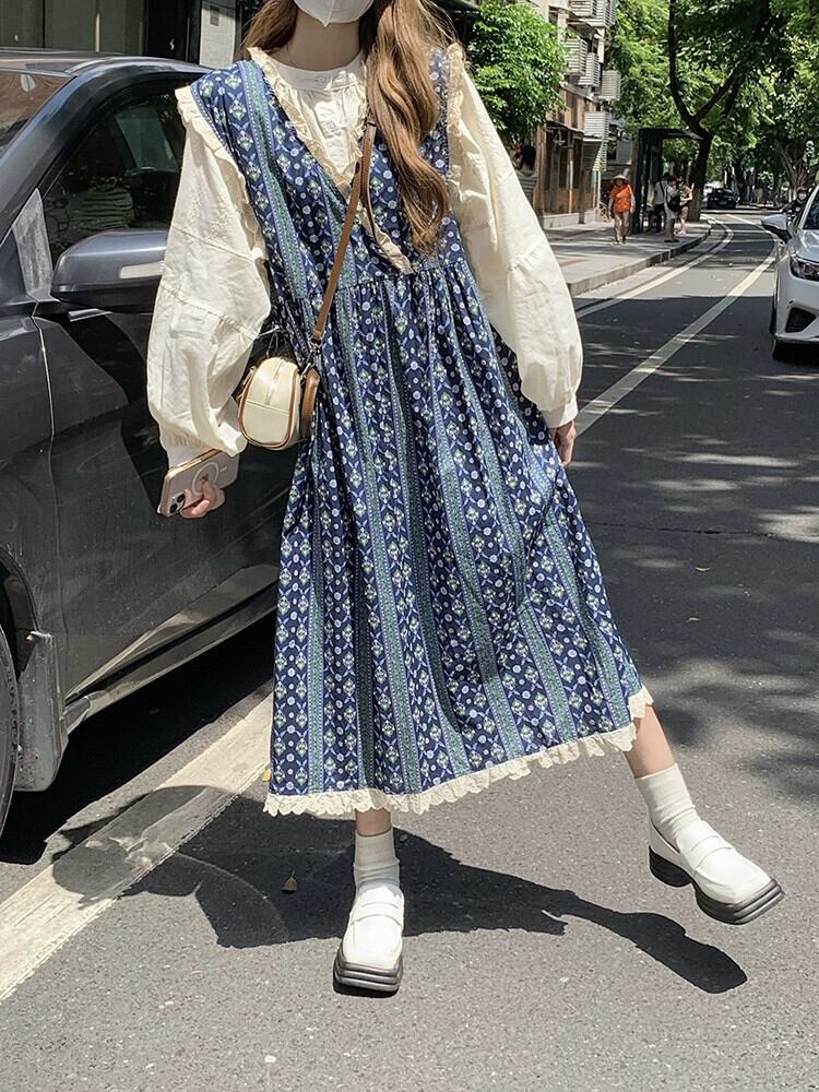 花柄ベストドレス レディース 春新作 小人 ユニーク スペシャルミルク スイート初恋 サスペンダースカート ロングスカート 大人ガーリー スウィート キュート カジュアル スプリング 春物 8571641600763873