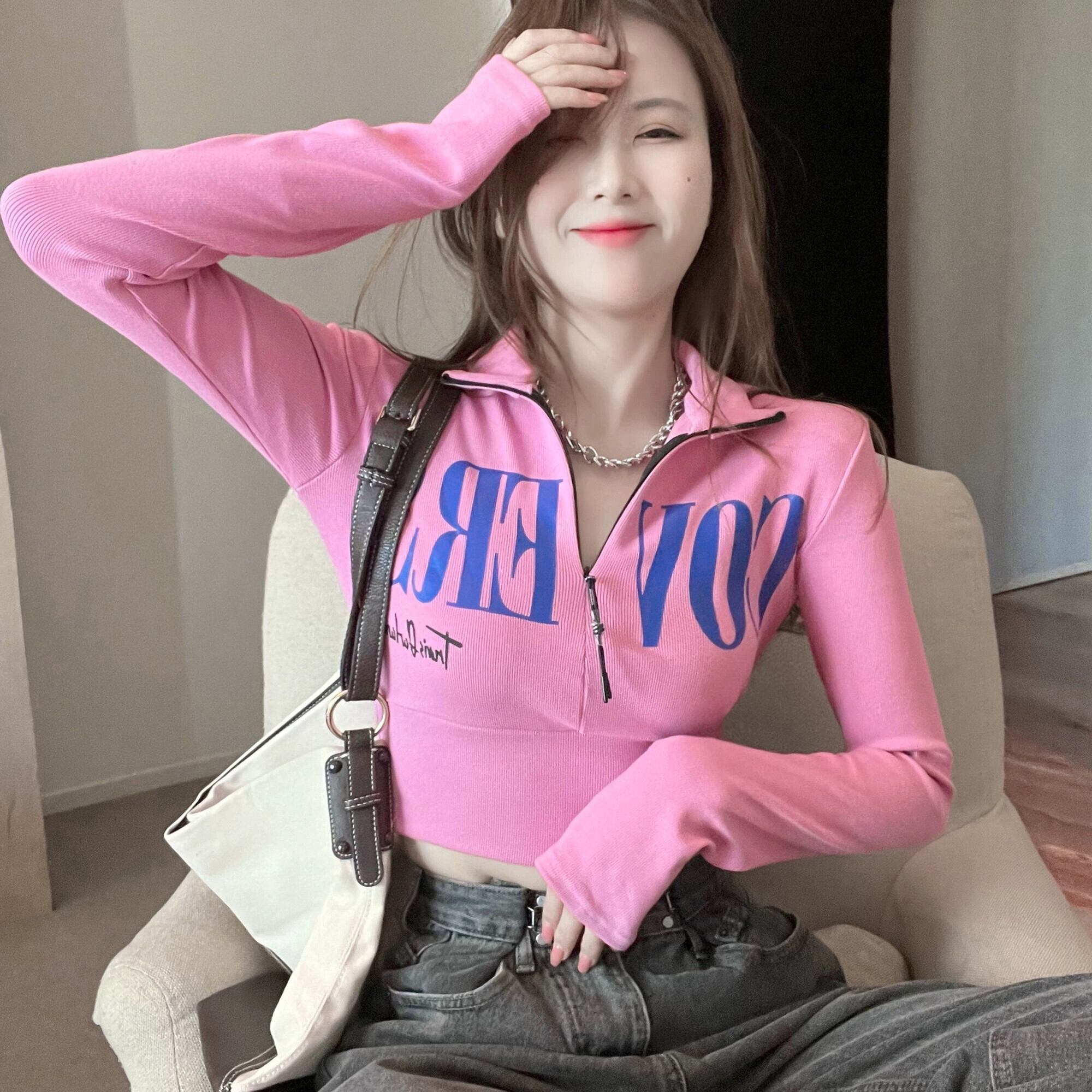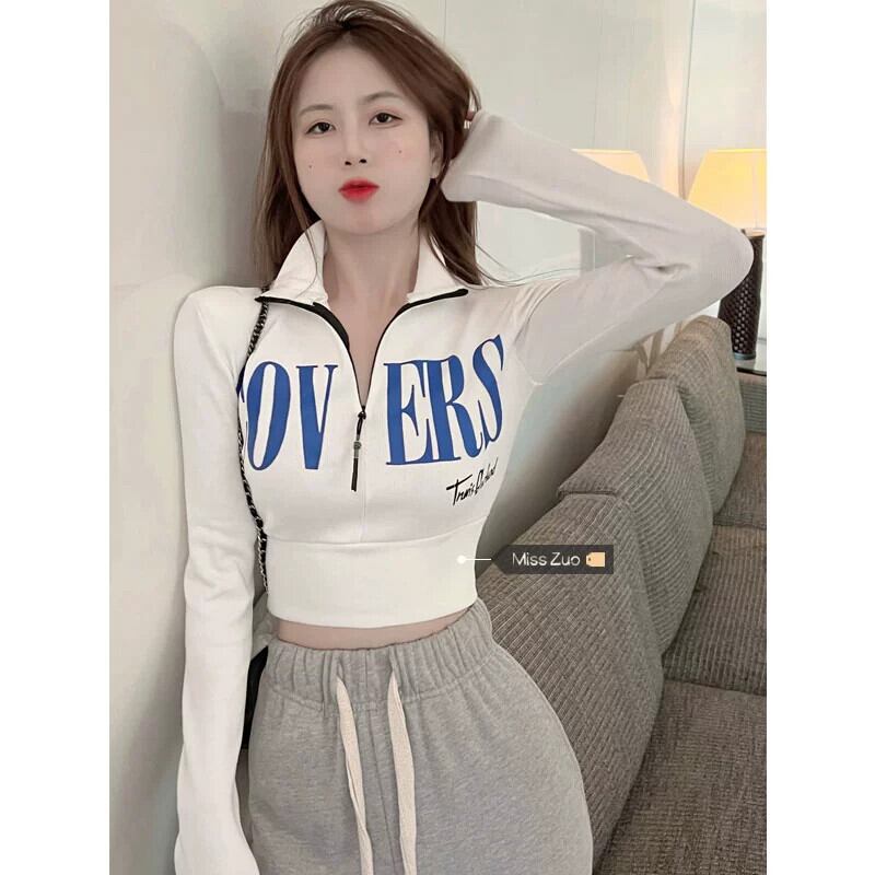 ジッパー長袖 Tシャツ婦人服デザインセンスニッチ 2023 秋の新しい純粋な欲望スリムショートトップ服 ロング オータム 秋物 ピュア 8571629773952568