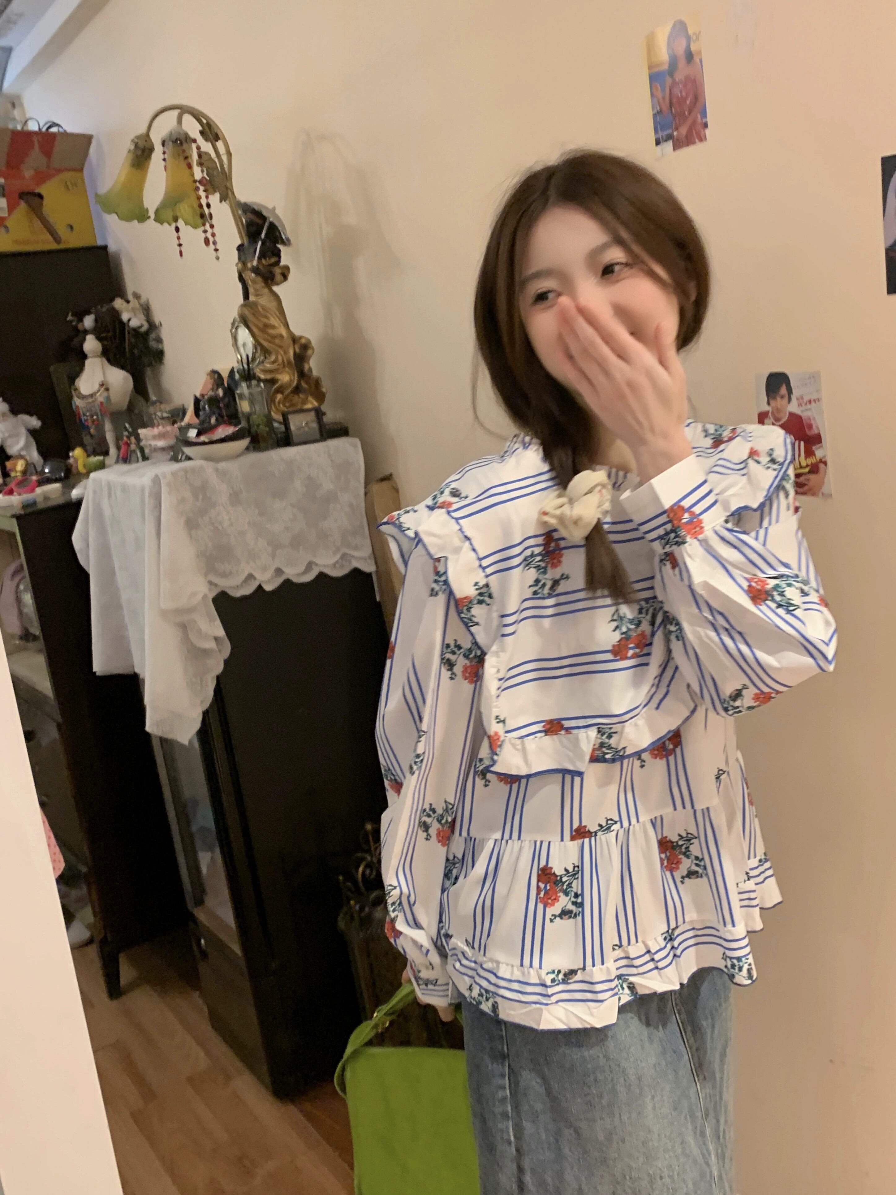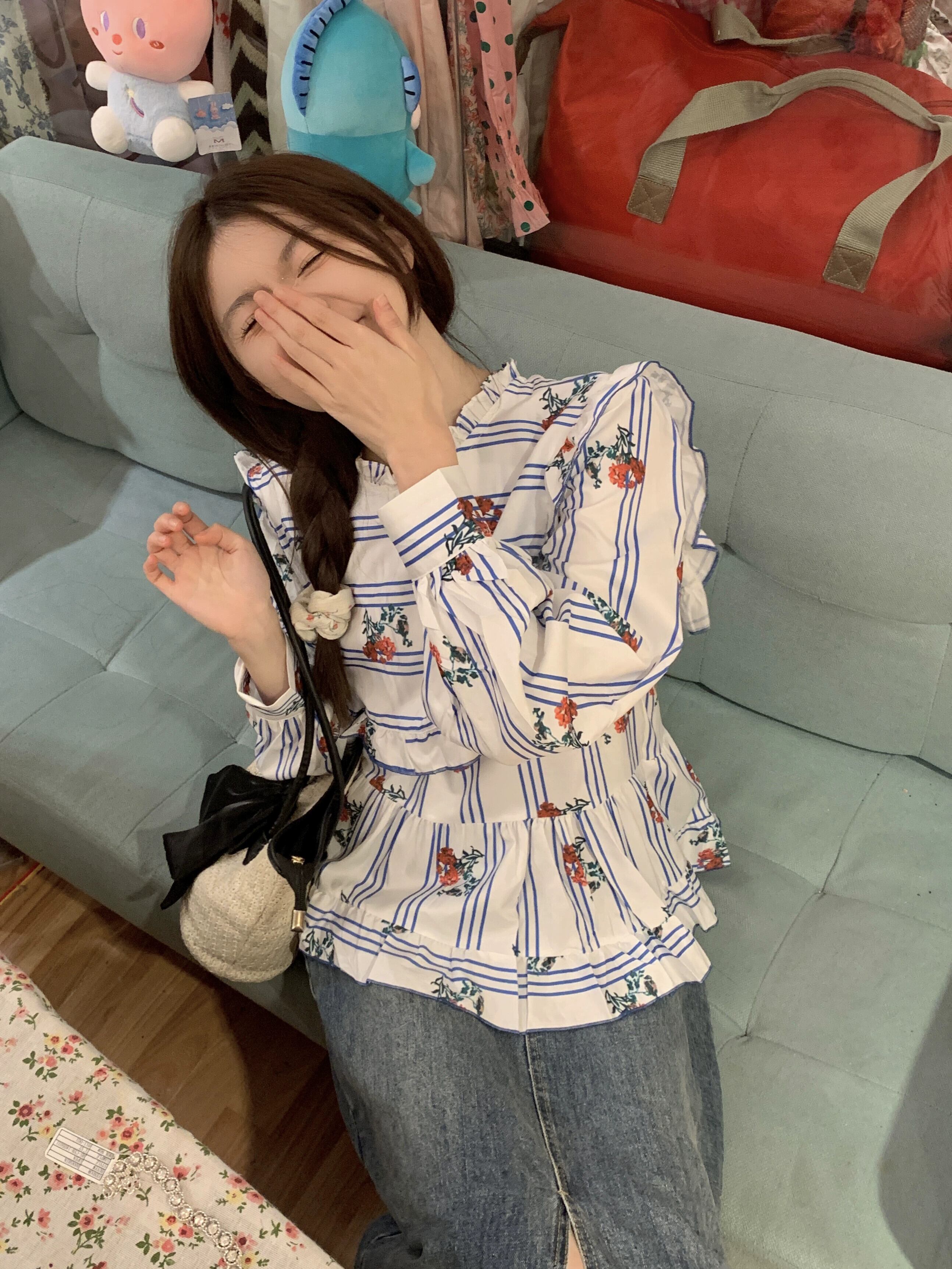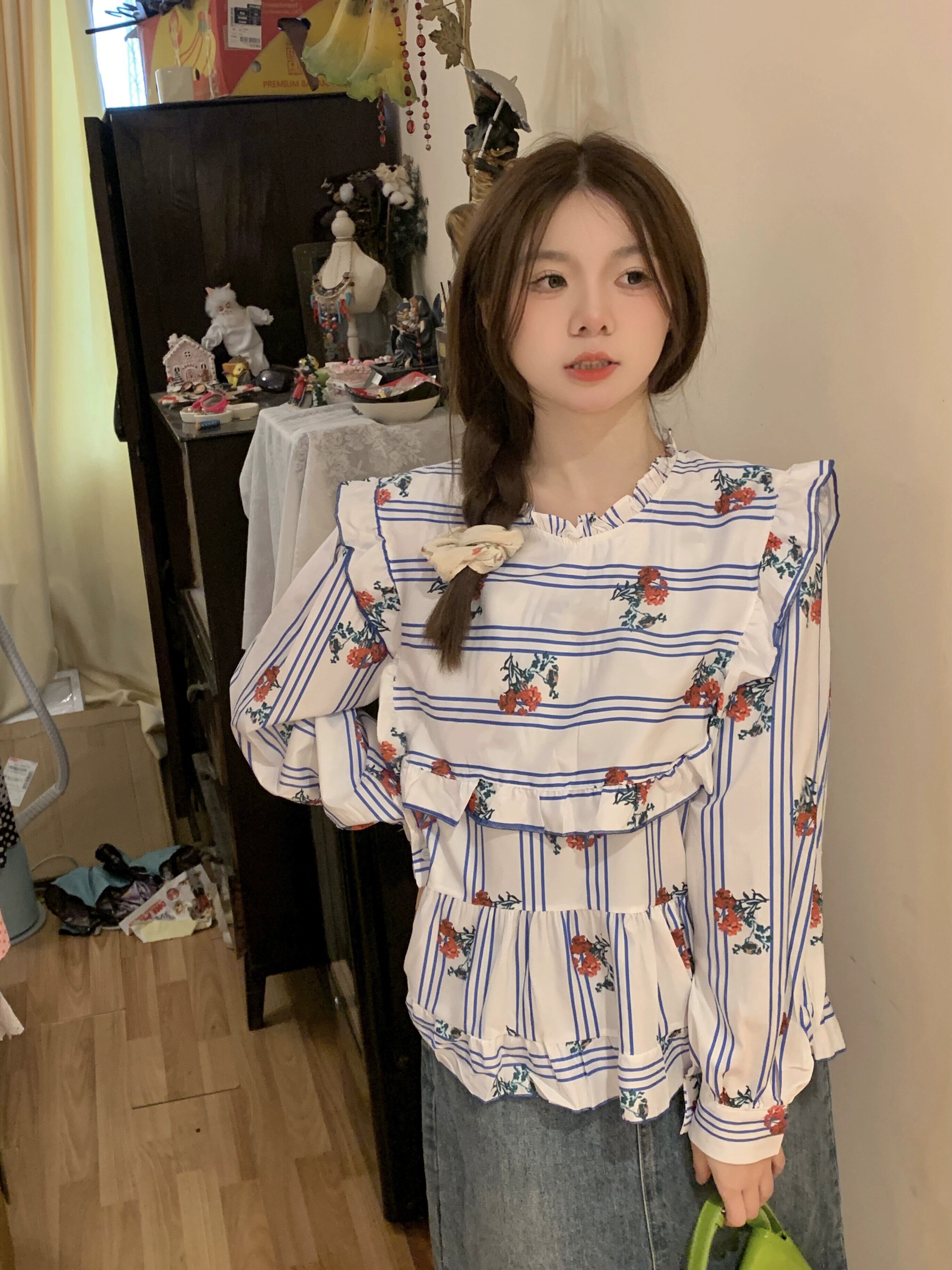 花柄トップ婦人服デザインセンスニッチ春2023新作小さく新鮮で甘い優しい長袖シャツ ロング 大人ガーリー スウィート キュート カジュアル スプリング 春物 8571664105313086