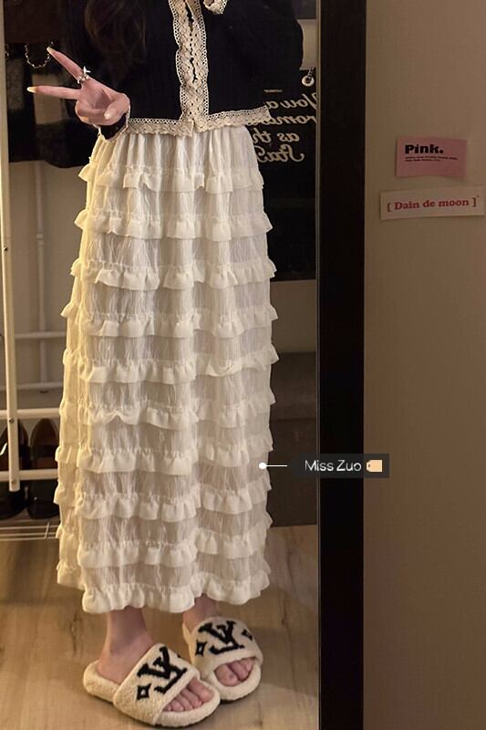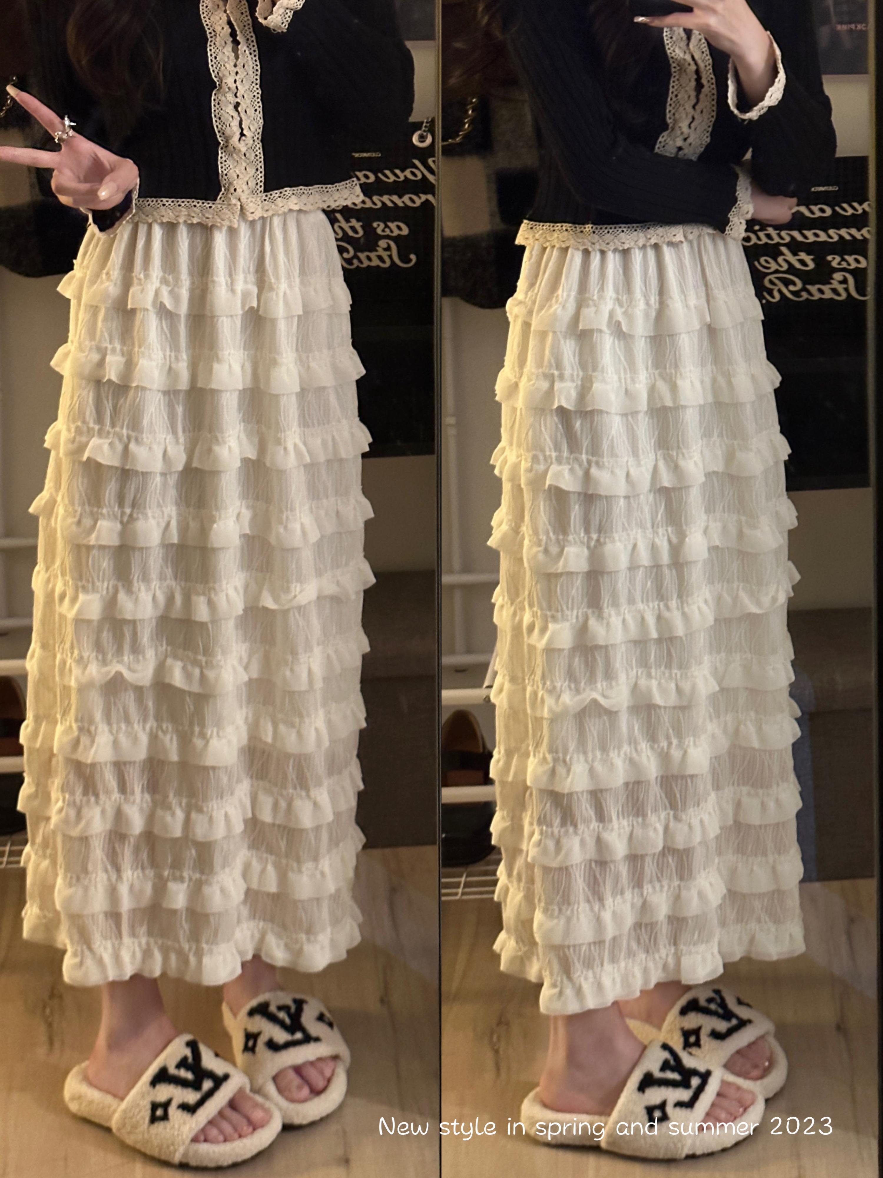 ミドル丈のケーキスカート スカート レディース デザインセンス 小柄な人向け 2023春新作 ハイウエスト Aラインスカート ハイウェスト スプリング 春物 8571672598656384