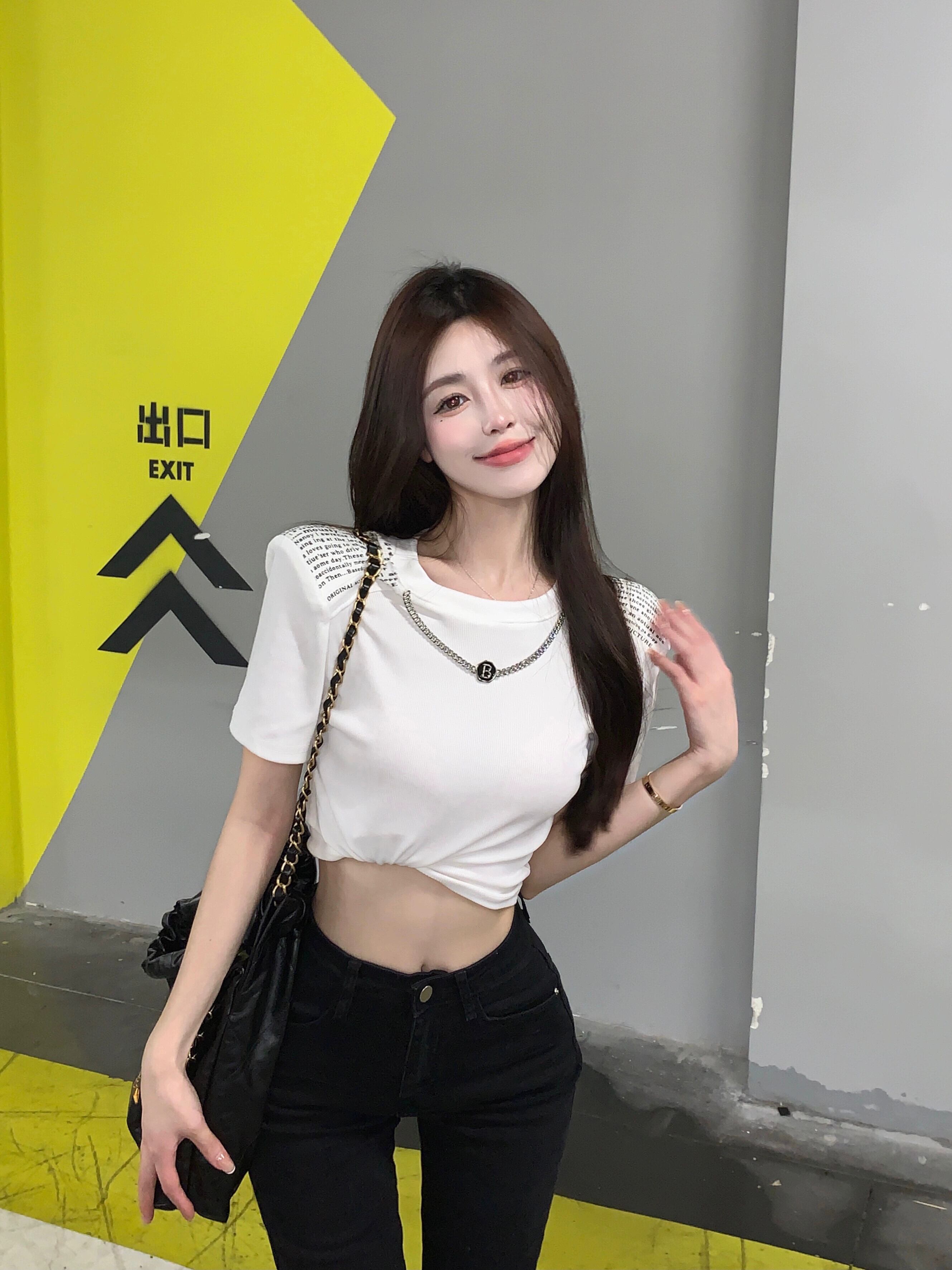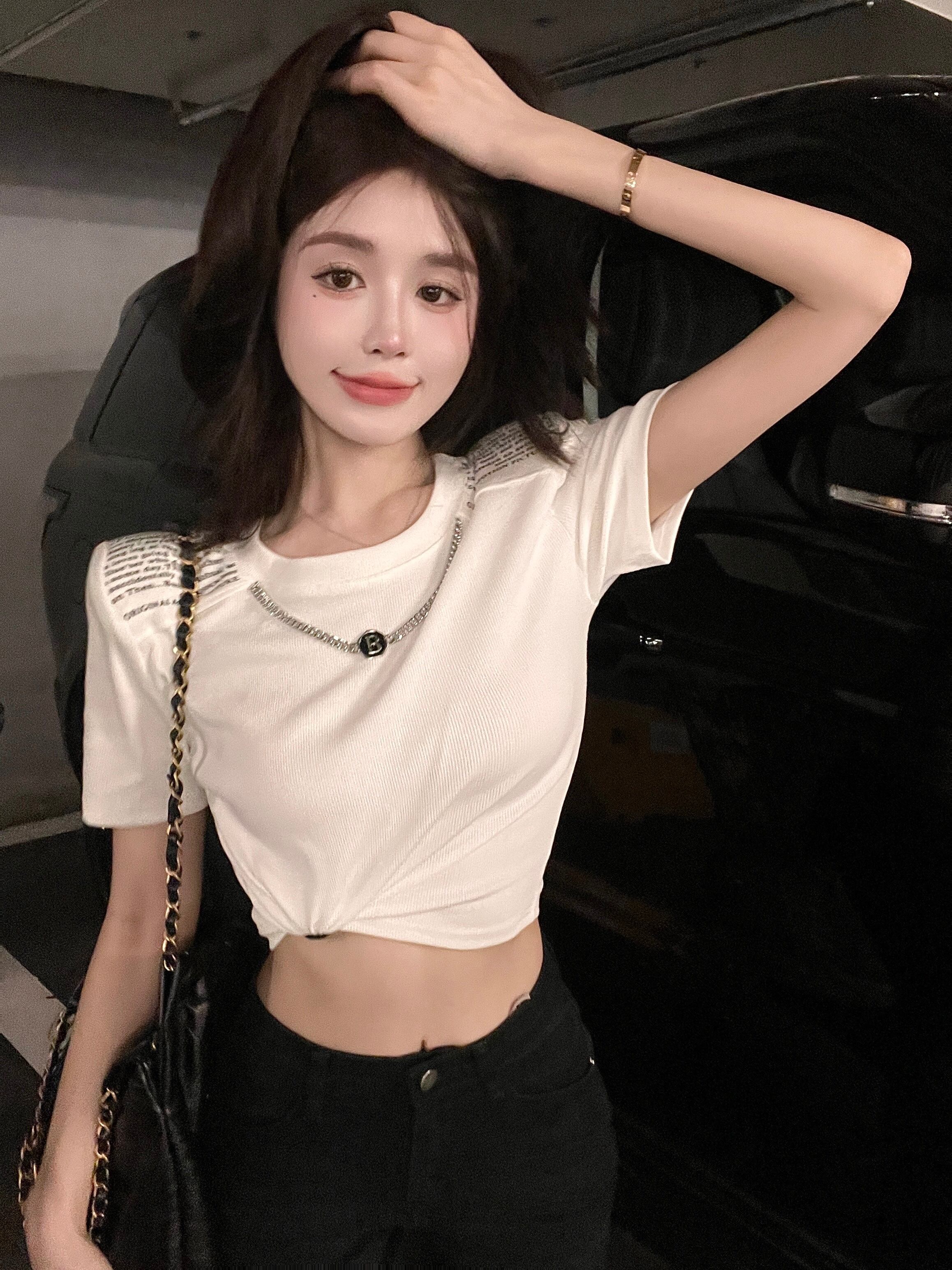 ショルダーパッド半袖 Tシャツ女性デザインセンスニッチ夏 2023 新しい香港風味シックな純粋な欲望ショートトップ サマー 夏物 ピュア 8571639569035136