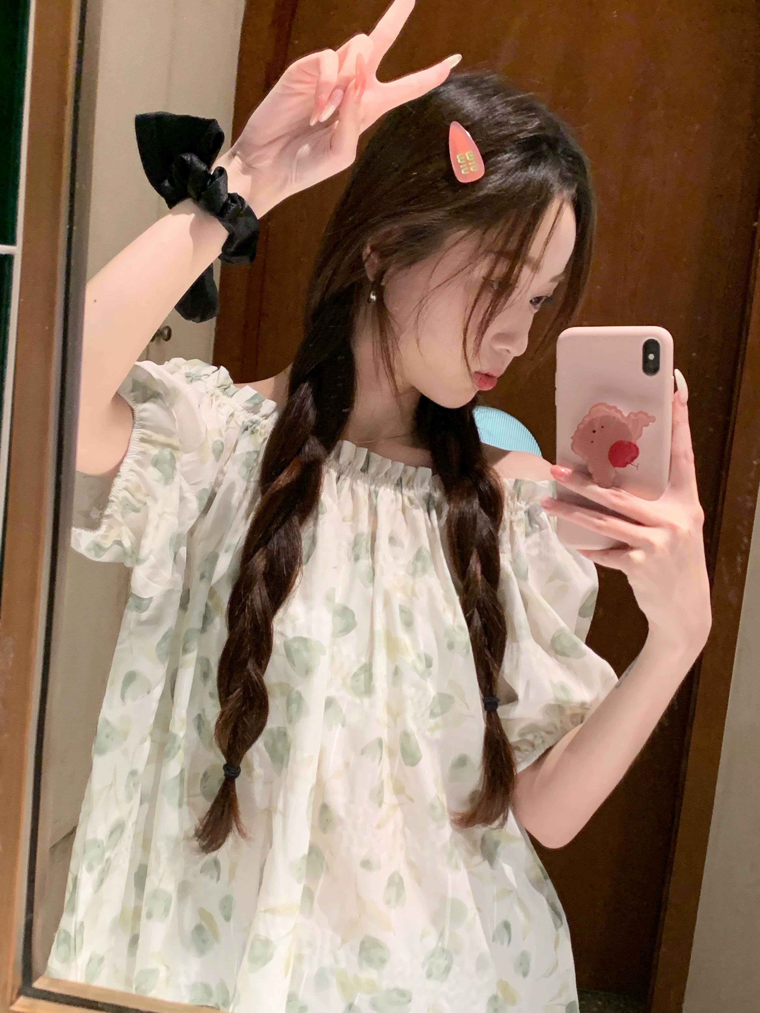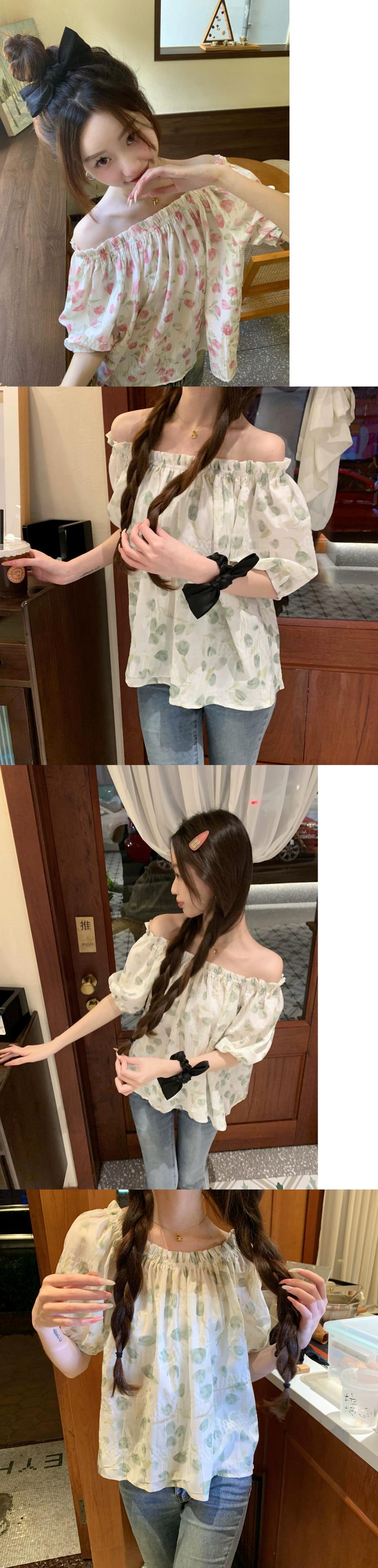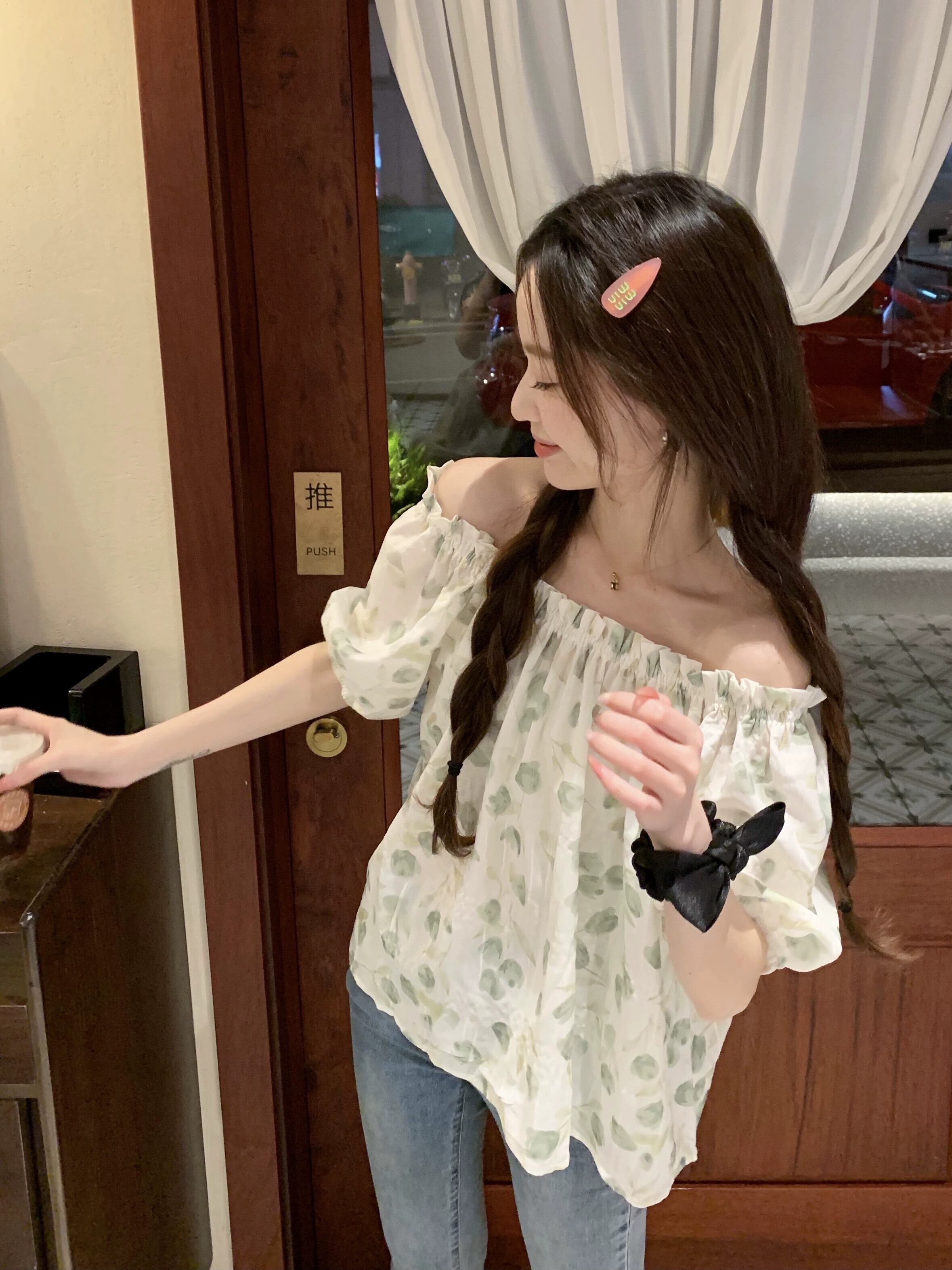 パフスリーブトップ女性の夏の2023新しい小さな新鮮な甘いユニークなシックな半袖花柄シャツお腹をカバー 大人ガーリー スウィート キュート カジュアル サマー 夏物 857168507395170