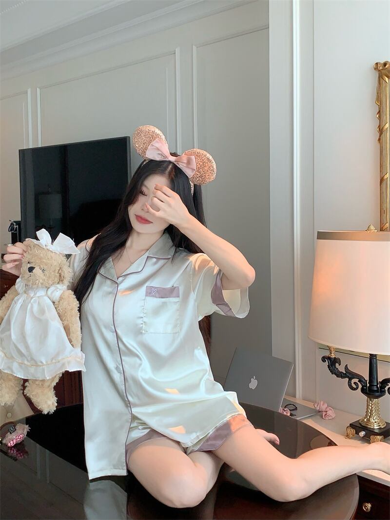 シャンパンアイスシルクパジャマ女性の夏の薄いセクションは半袖ショーツの外で着用できますインターネットセレブスタイルのハイエンドホームサービススーツ サマー 夏物 ブルマー 8571670773976410
