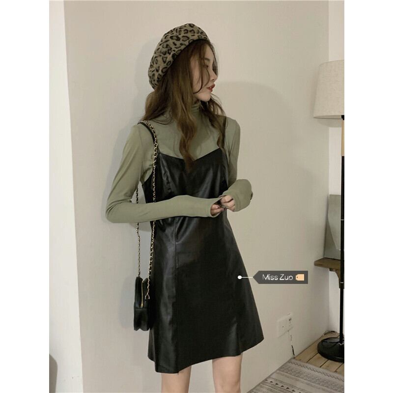 レザースカートサスペンダースカート女性秋 2023 新しい小さなサスペンダードレスデザインセンスニッチ気質ショートスカート オータム 秋物 8571695209250944