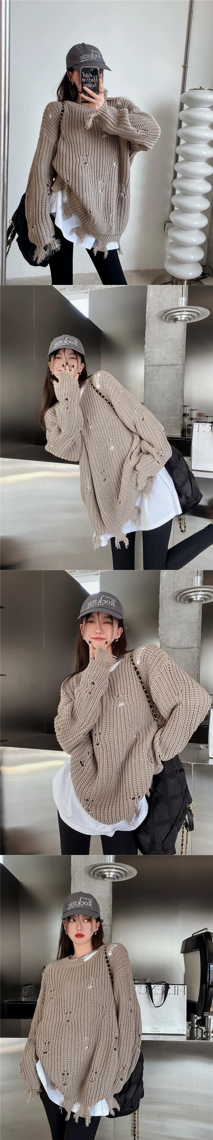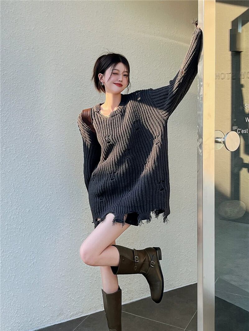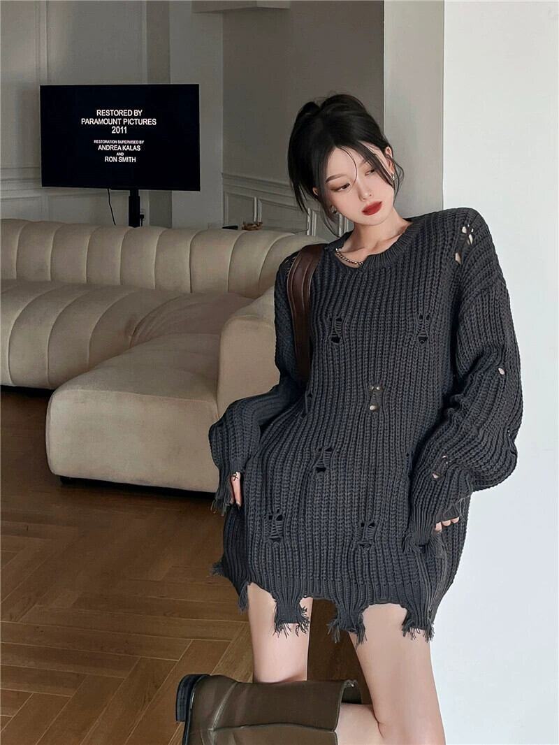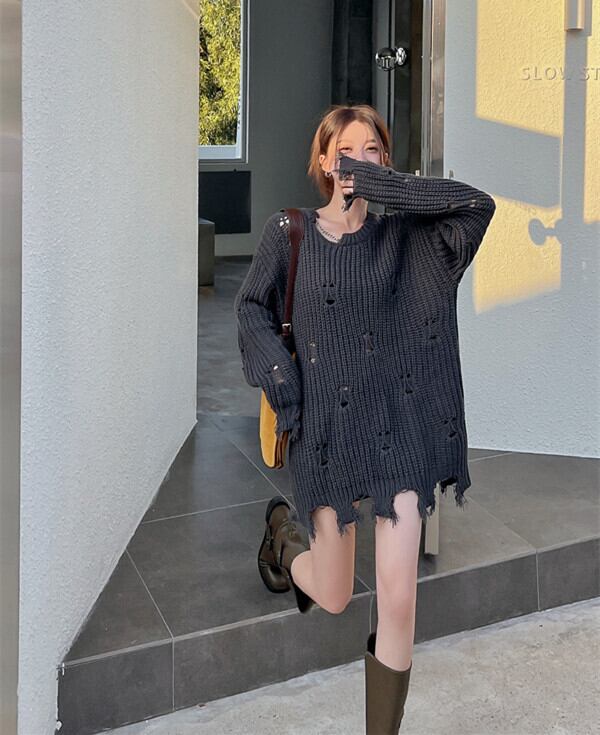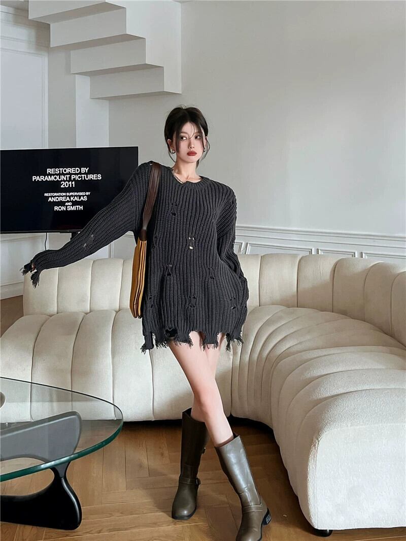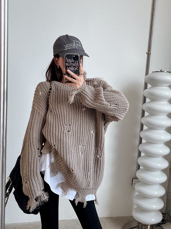 ホールセーター女性の秋と冬のデザインセンスニッチ 2023 新しい緩い怠惰なスタイルのレトロなミッドレングスニットセーター オータム 秋物 ウィンター 冬物 8571623644776385