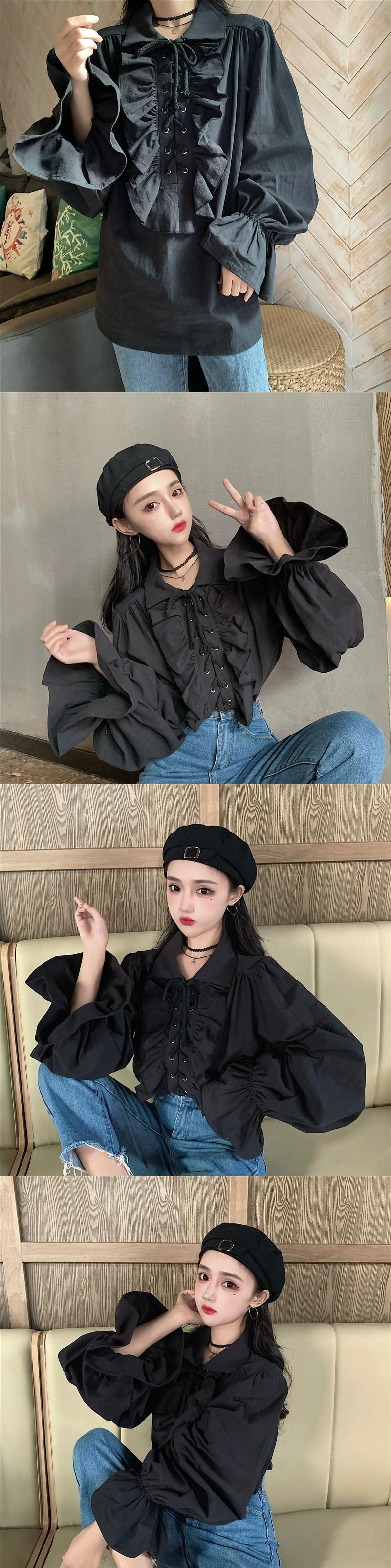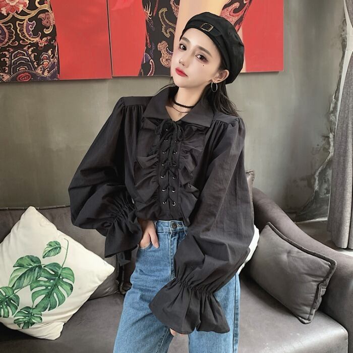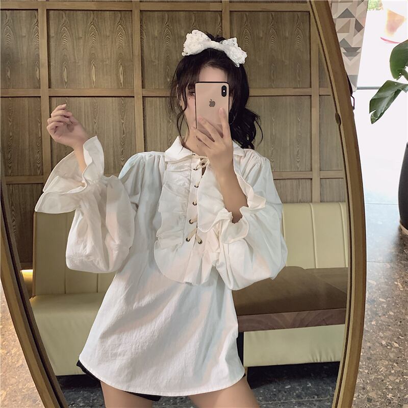 2023春秋デザインセンスフリル巾着デザインネットレッド個性コートシャツレディース長袖トップ ロング スプリング 春物 オータム 秋物 8571636878138299