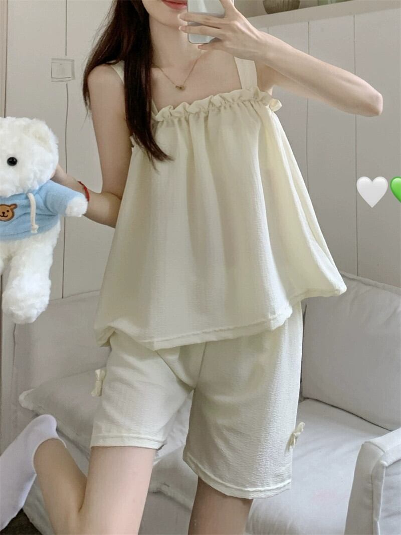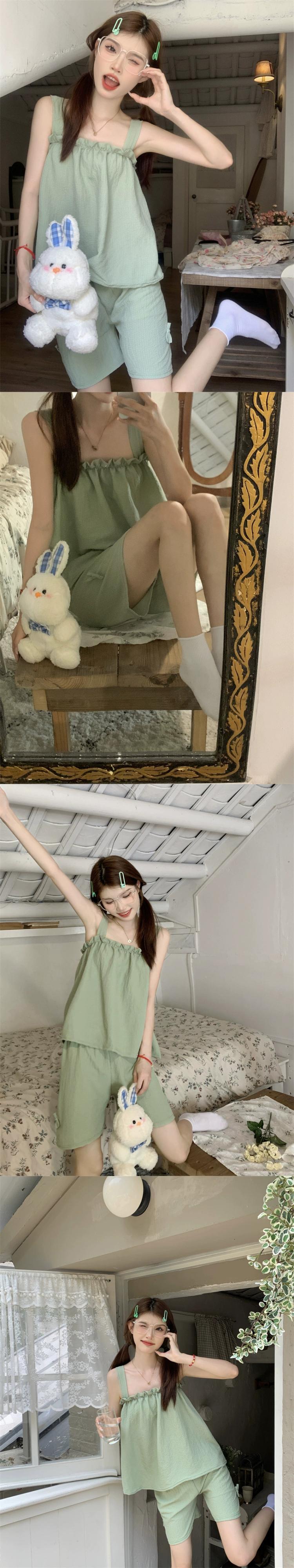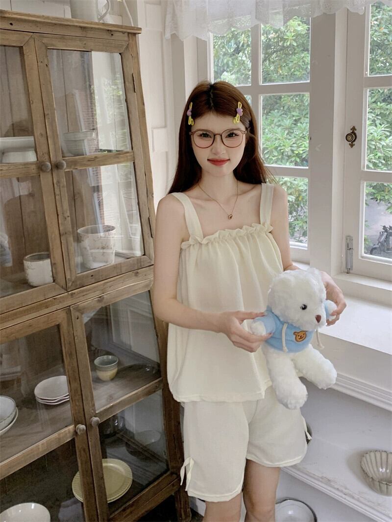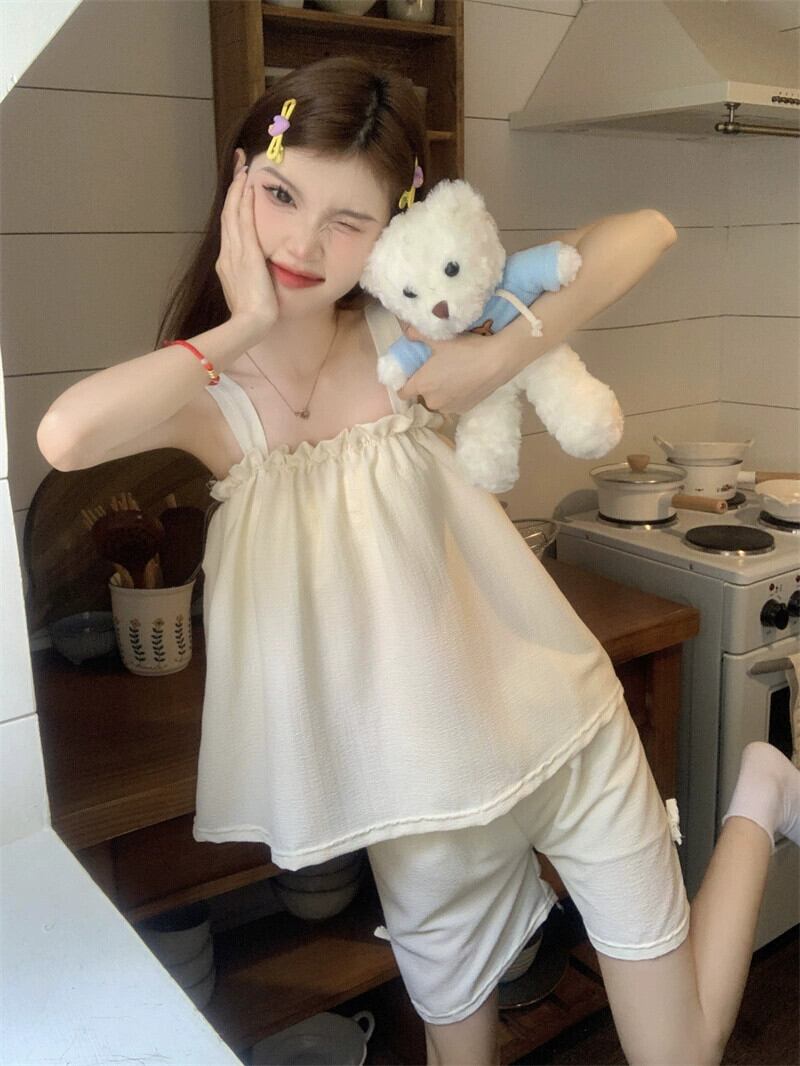 サスペンダー、ショートパンツ、パジャマ、女性の夏の薄いセクション2023新しいネットレッドスタイル、甘くて小さなホーム服セット 大人ガーリー スウィート キュート カジュアル サマー 夏物 ショーツ ブルマー 8571628904934476