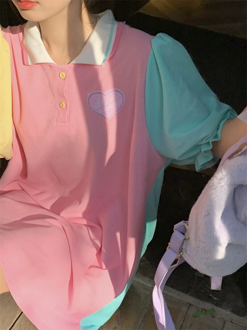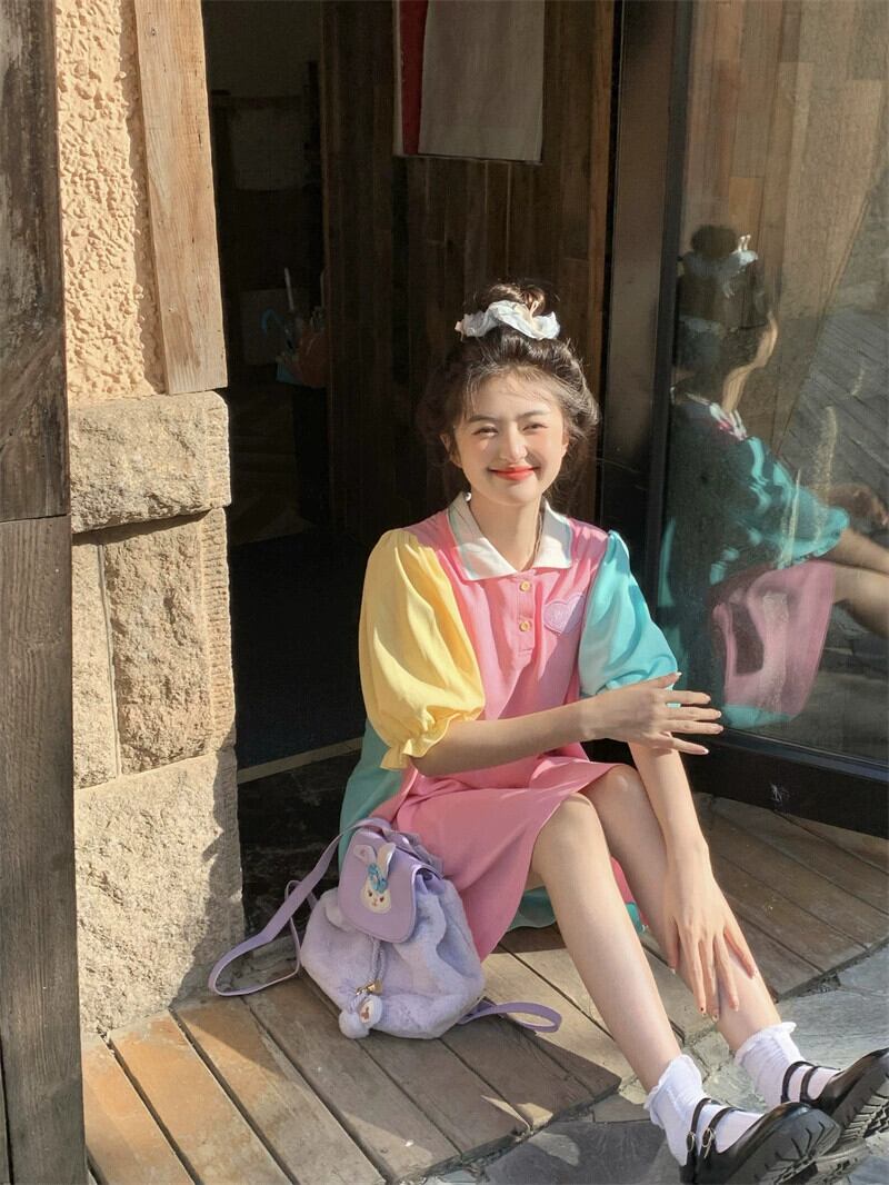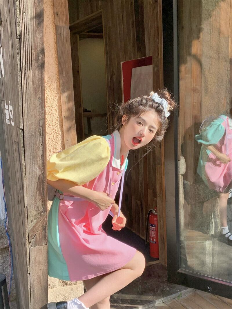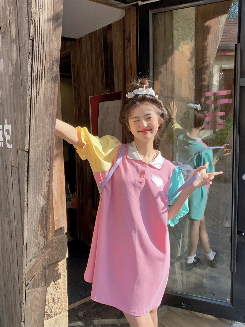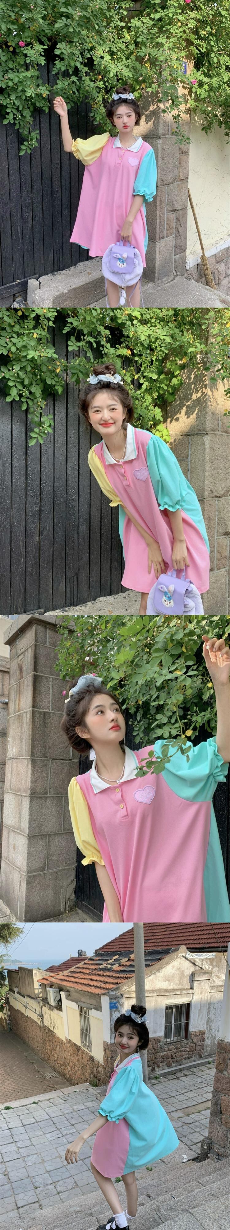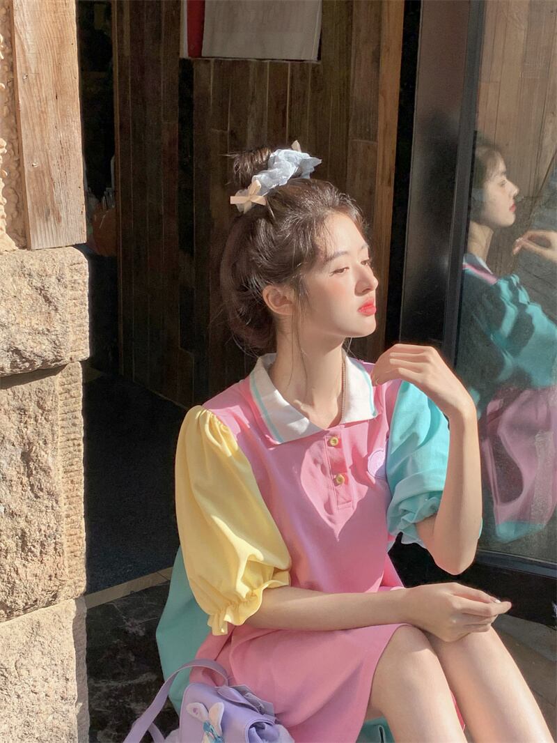 キャンディ T シャツドレス女性の夏の 2023 新しいドーパミン着用甘くて年齢を減らすゆるいパフスリーブスカート 大人ガーリー スウィート キュート カジュアル サマー 夏物 Tシャツ 8571696113128393