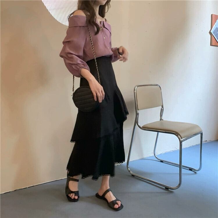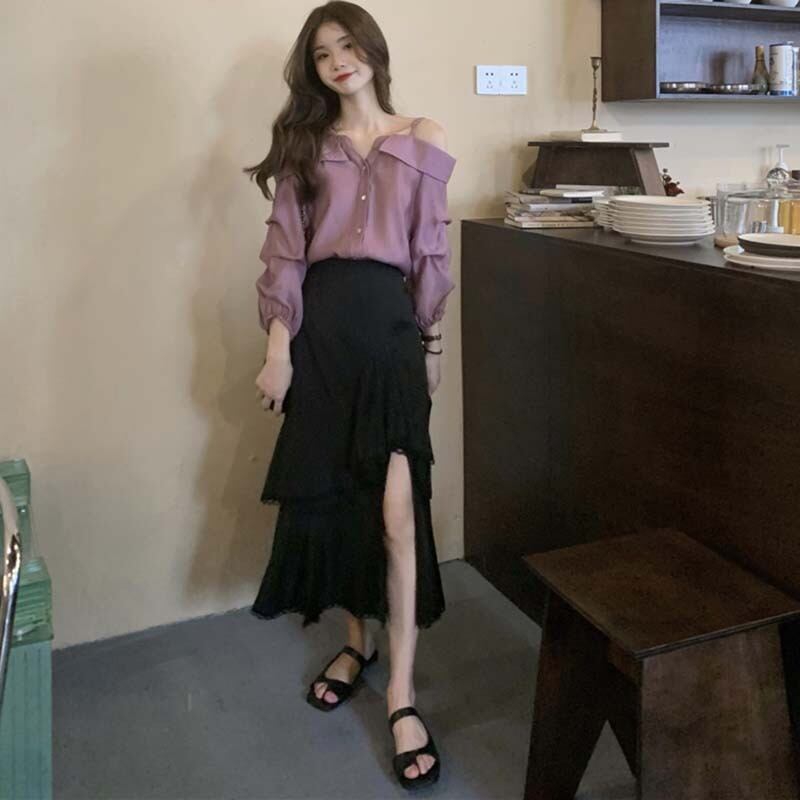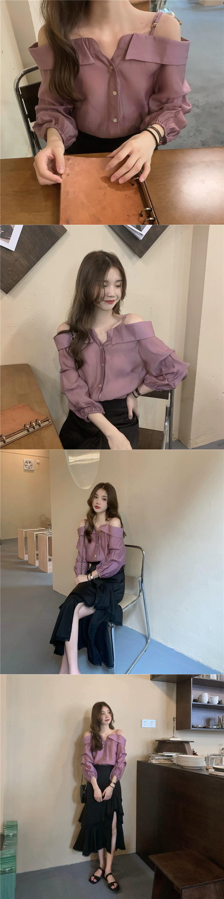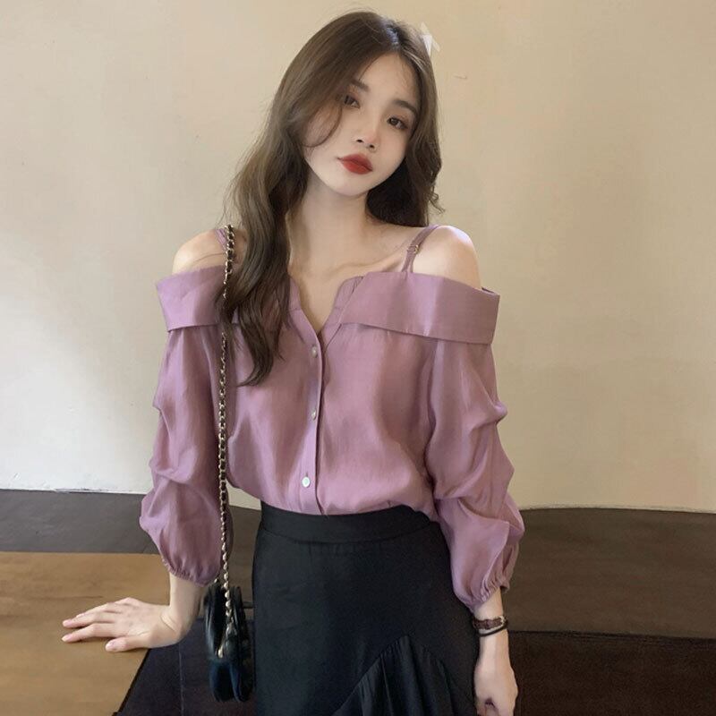 純粋な欲望スタイルワンショルダートップ女性の夏のデザインセンスニッチ気質シャツ2023新しい長袖シャツ ロング サマー 夏物 8571619986477916