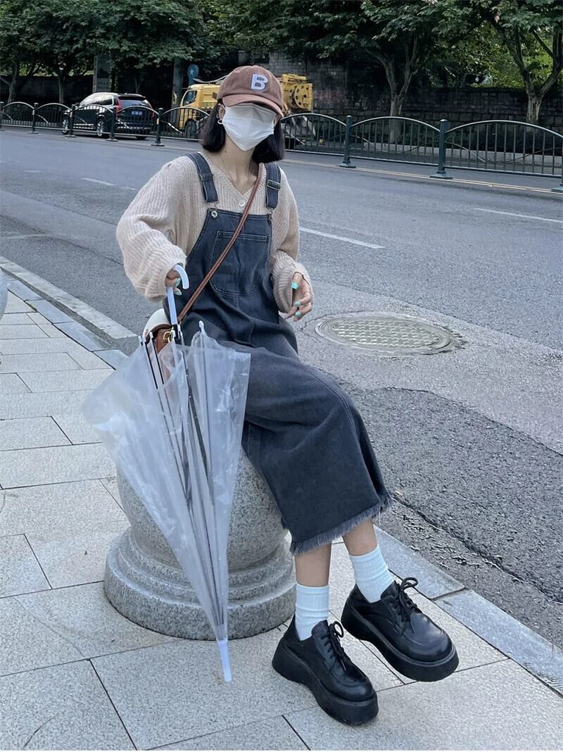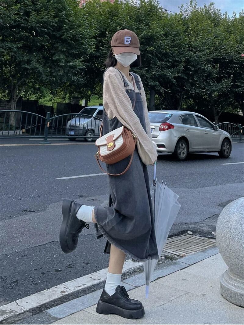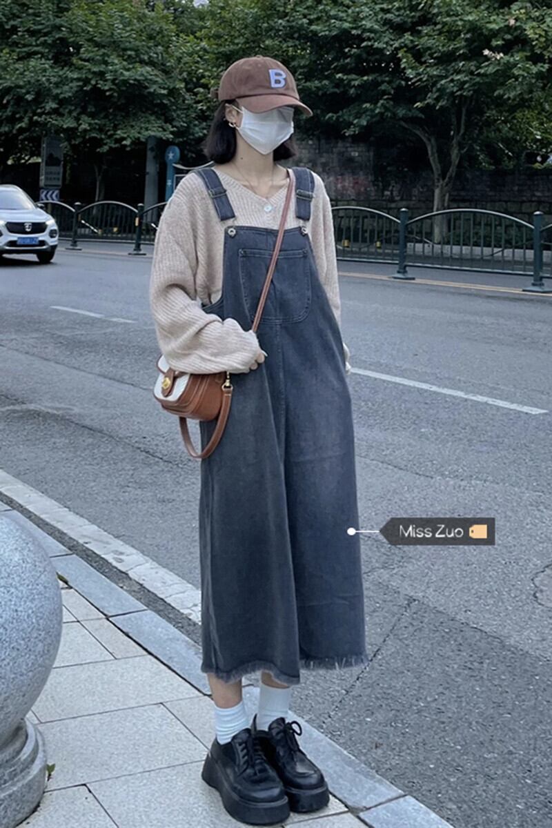 デニムサスペンダードレスレディース秋独特のシックなスモールミルク甘いスリットロングスカートニッチなデザインセンス 大人ガーリー スウィート キュート カジュアル オータム 秋物 8571638857957715