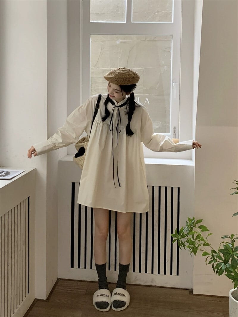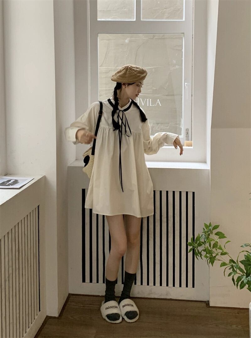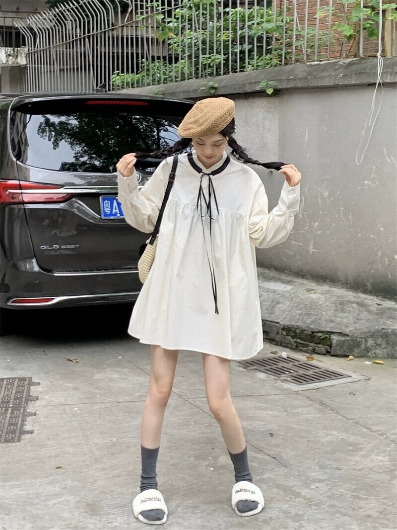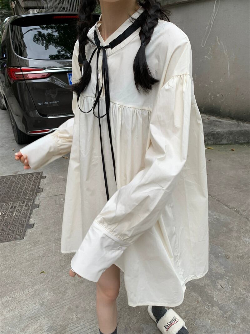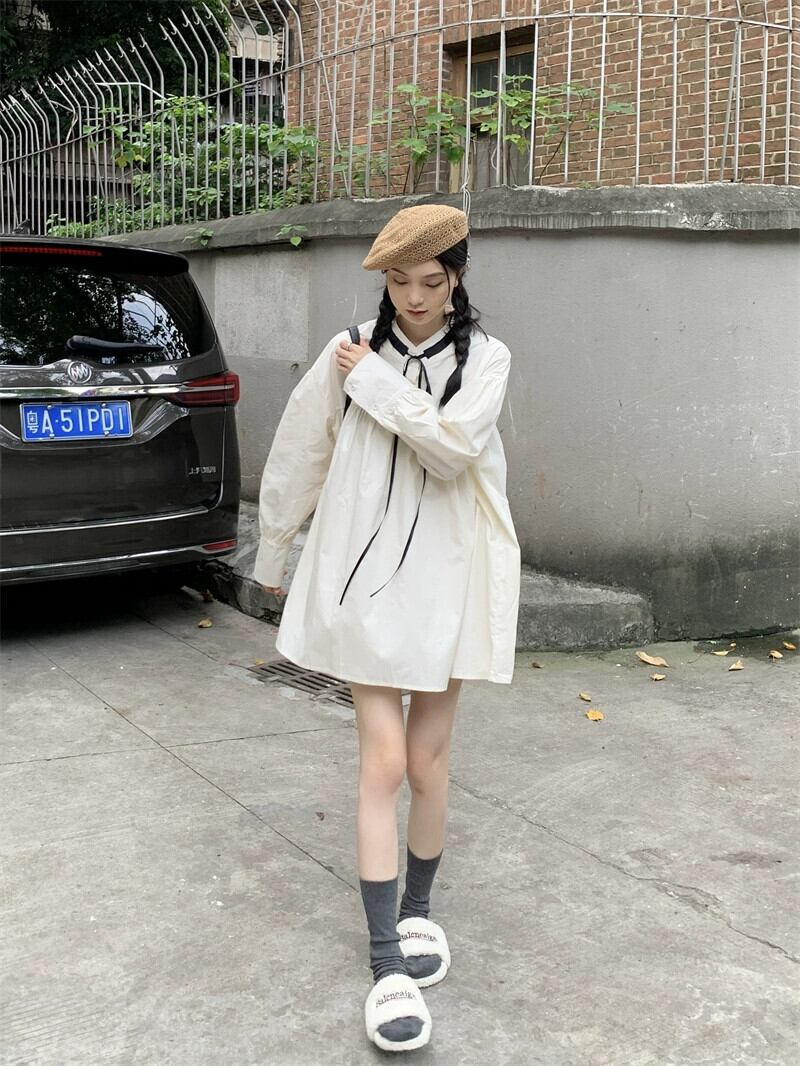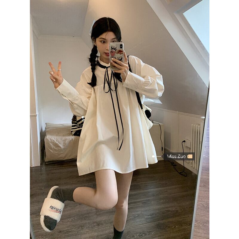 長袖シャツドレス女性の 2023 秋の新しい甘いスタイル年齢を減らす小男ルーズドールショートスカート ロング 大人ガーリー スウィート キュート カジュアル オータム 秋物 8571629088308444