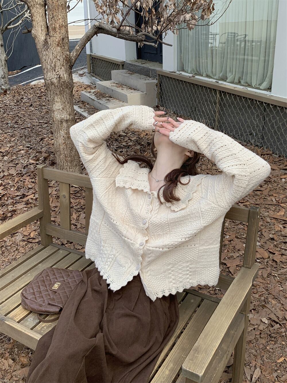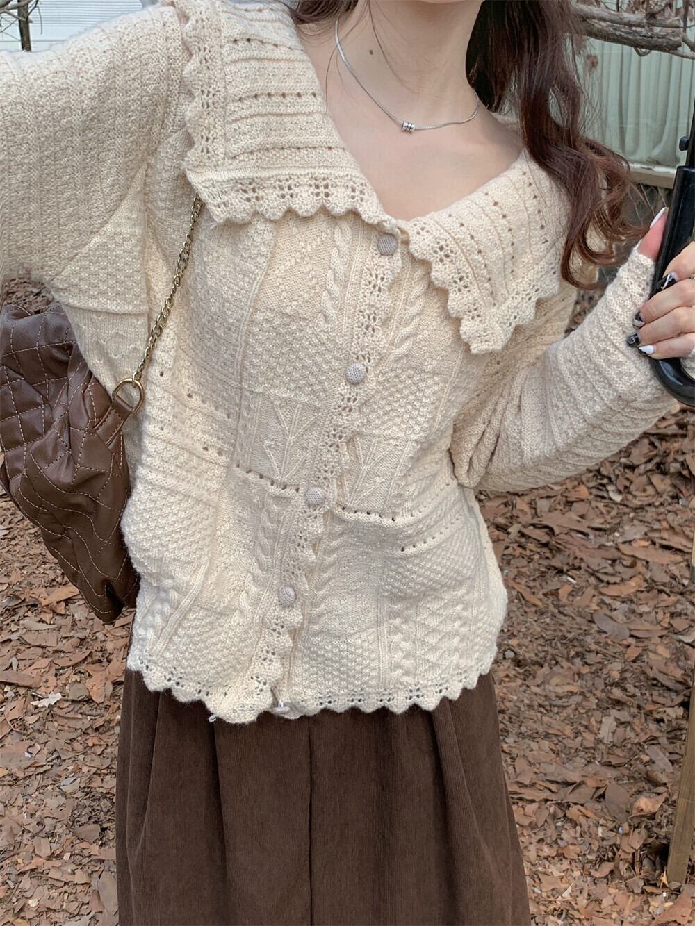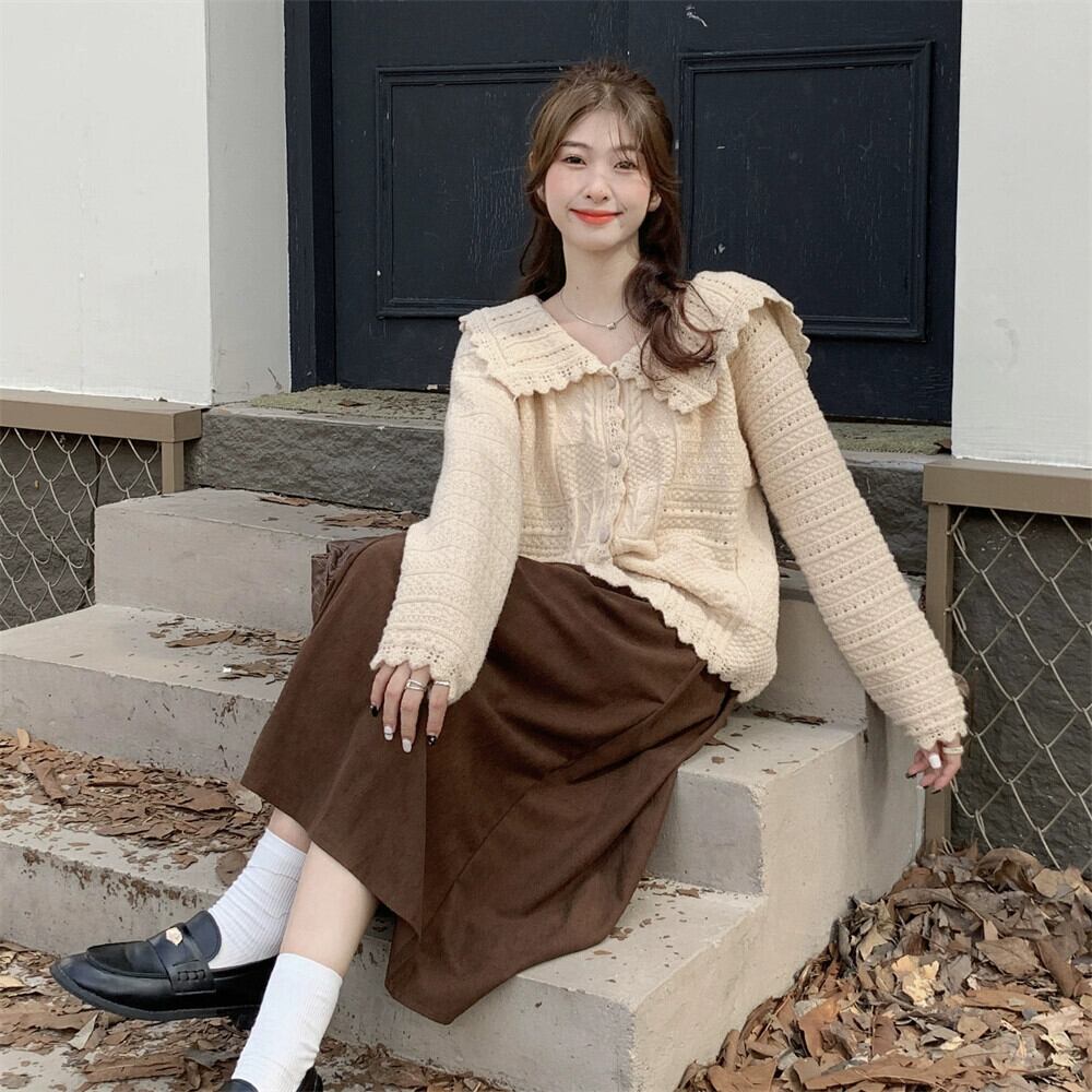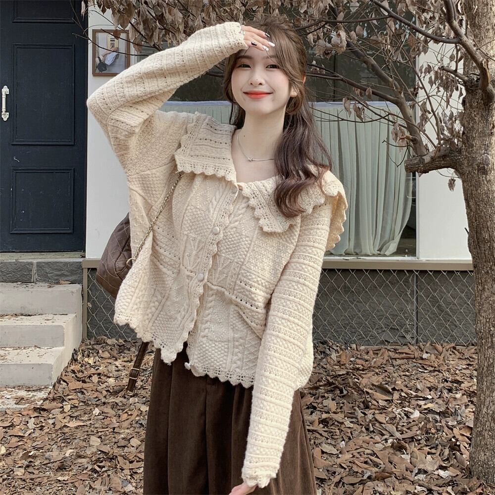 ニットカーディガン女性の秋と冬の新しいフレンチスタイルの優しい人形の襟のセーターコートニッチシックシックトップ オータム 秋物 ウィンター 冬物 8571665984329879