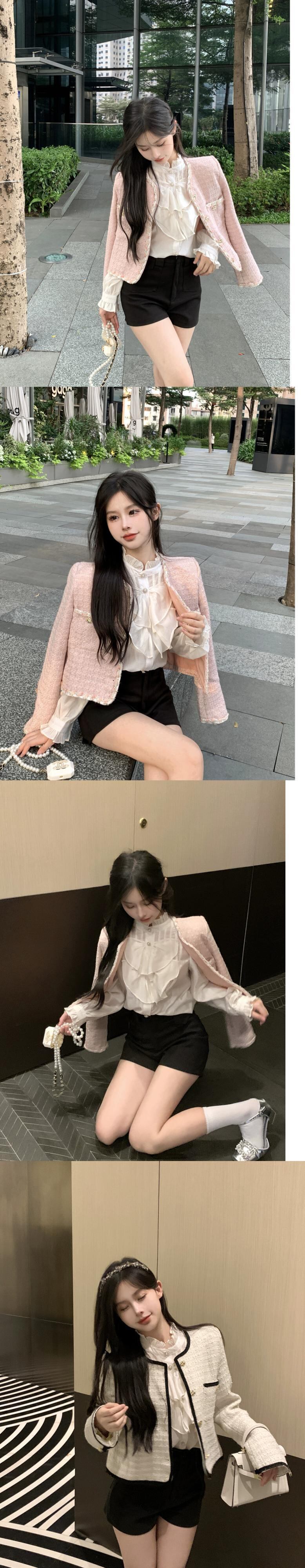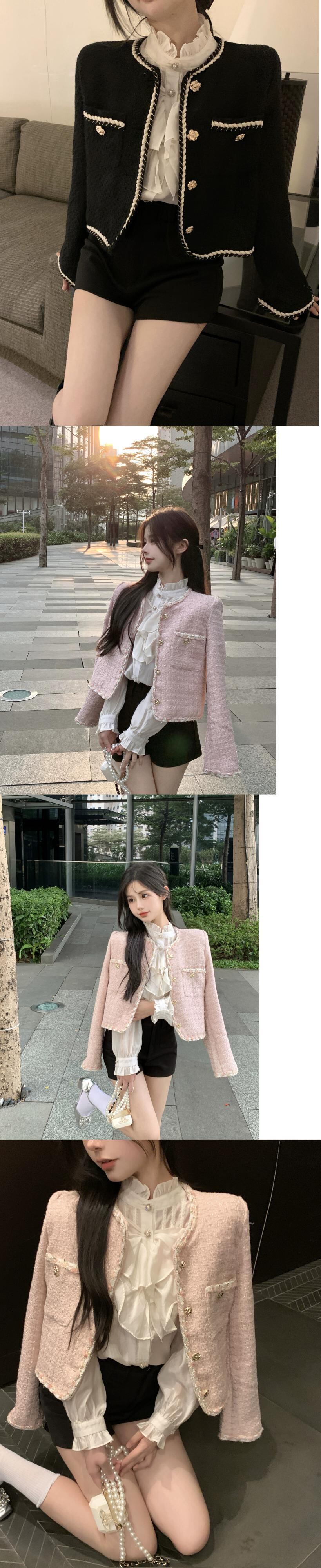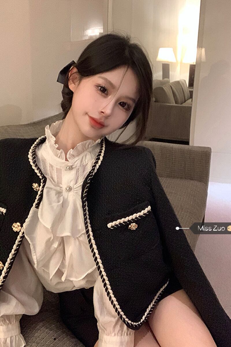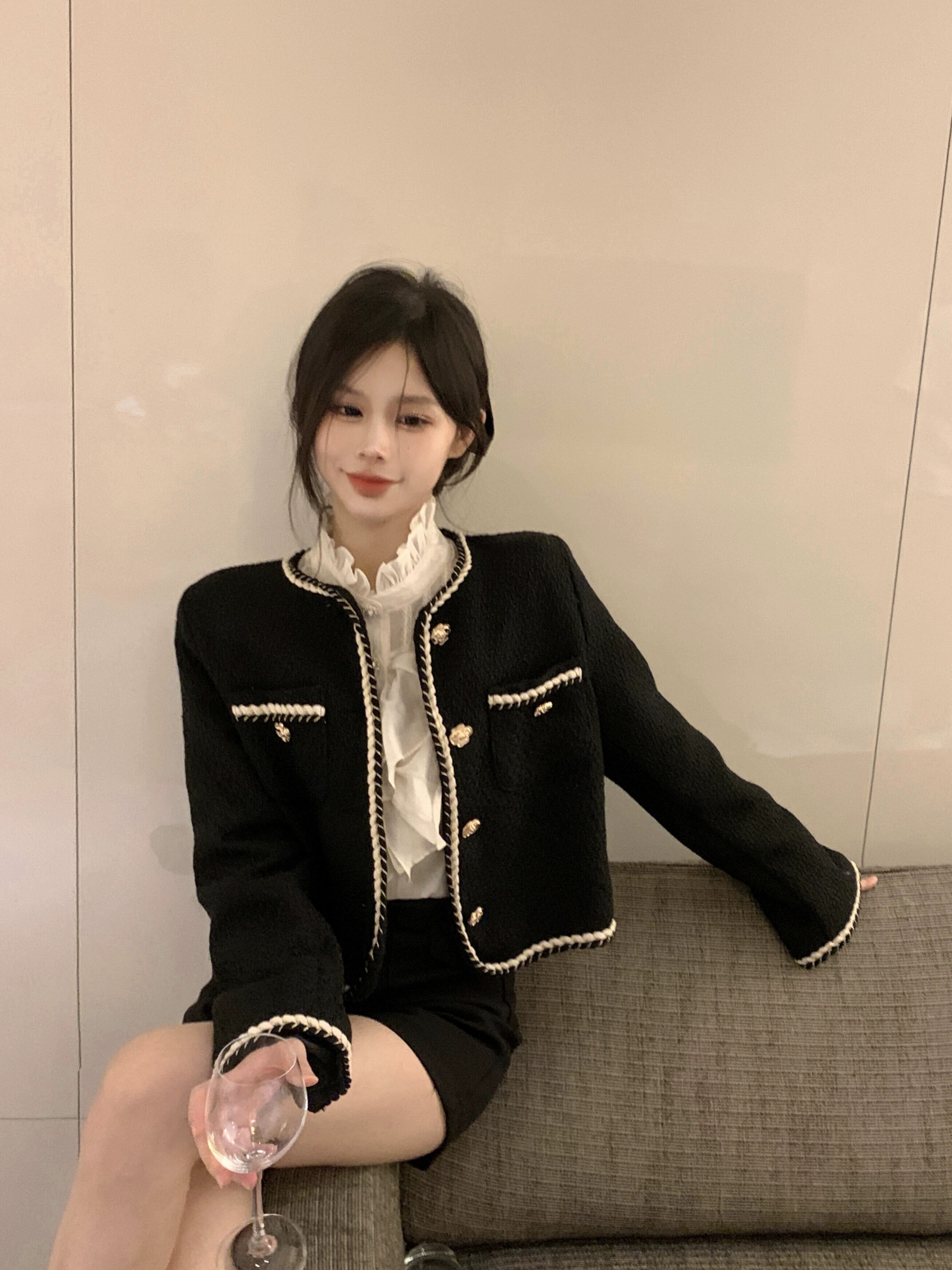 Xiaoxiang 風下品ウールコート婦人服 2023 春の新作フランスの気質ハイエンドブラッククロップドトップ スプリング 春物 85716842895507