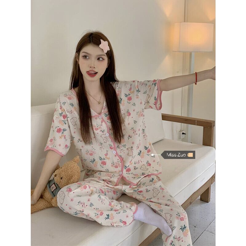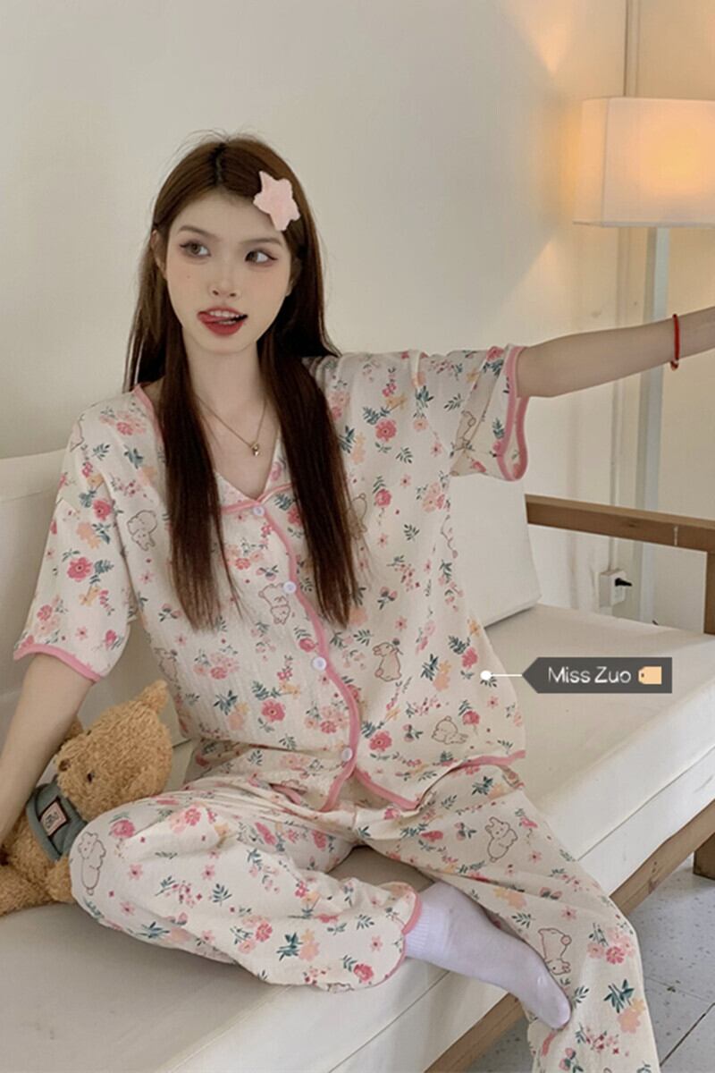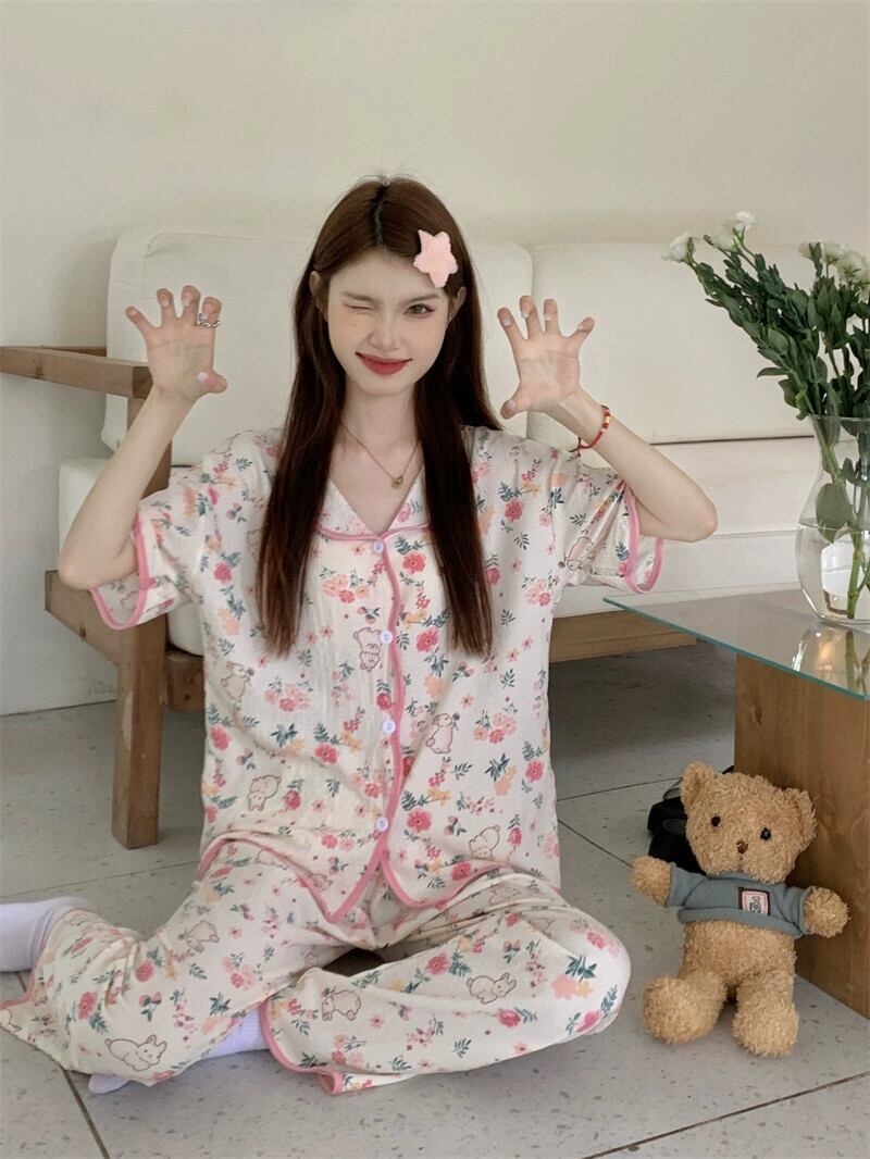女性が夏にスタイリッシュに着られる花柄パジャマ、甘くてかわいいショートパンツ、ズボン、半袖ホーム服スリーピーススーツ 大人ガーリー スウィート キュート カジュアル サマー 夏物 ショーツ ブルマー 8571645234629732
