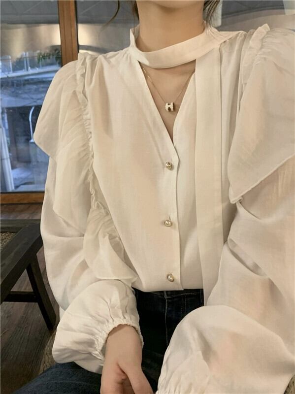 ファルバラトップ女性のデザインセンスニッチシャツ2023年秋の新しいフランスのハイエンドの小さな長袖シャツ ロング オータム 秋物 8571677419463923