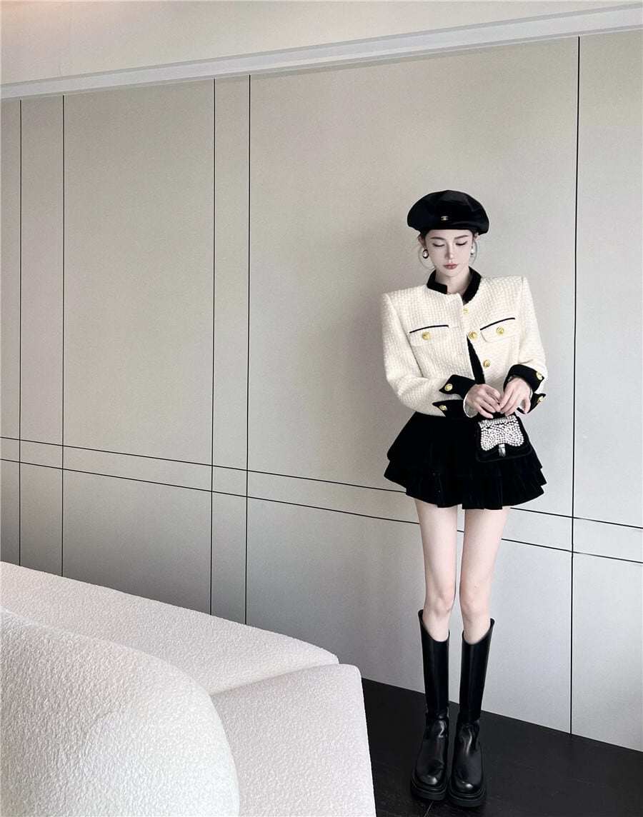 色:グレーコート,白いコート,赤いコート,ツイルジャケット,カップケーキドレス