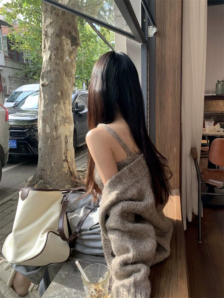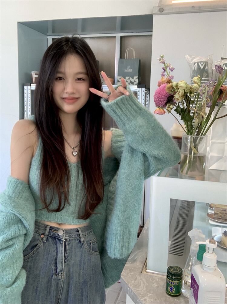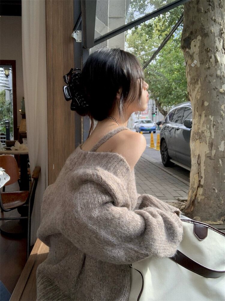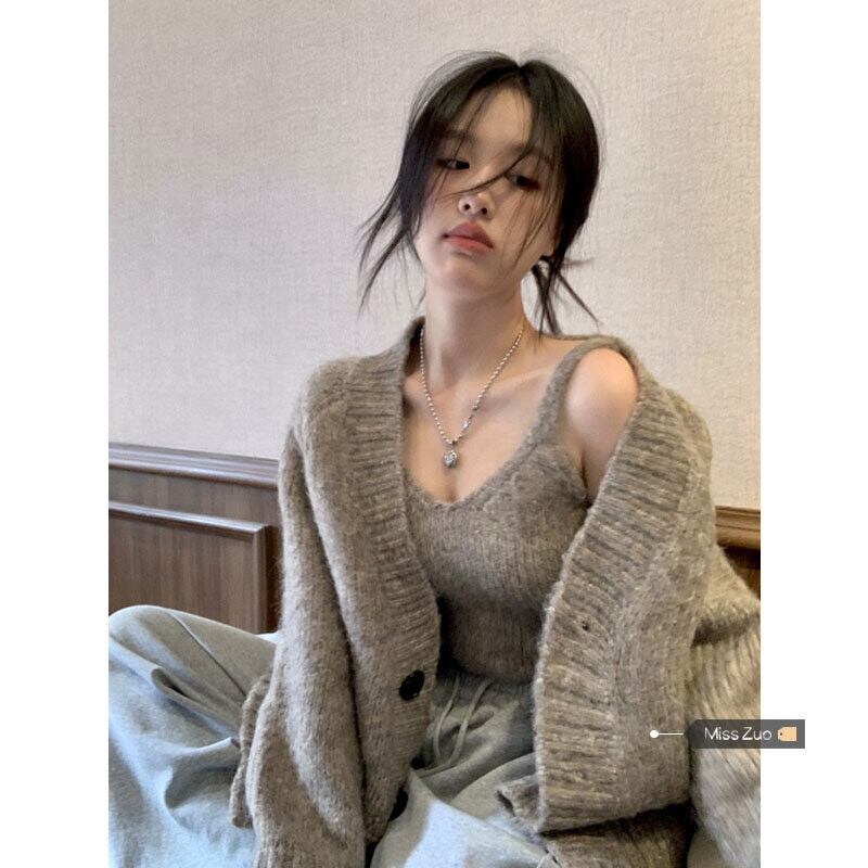 V ネックセータージャケット女性の秋冬 2023 新しい緩いレトロな優しいスタイルのデザインセンスニッチニットカーディガン オータム 秋物 ウィンター 冬物 Vネック 8571673176393177