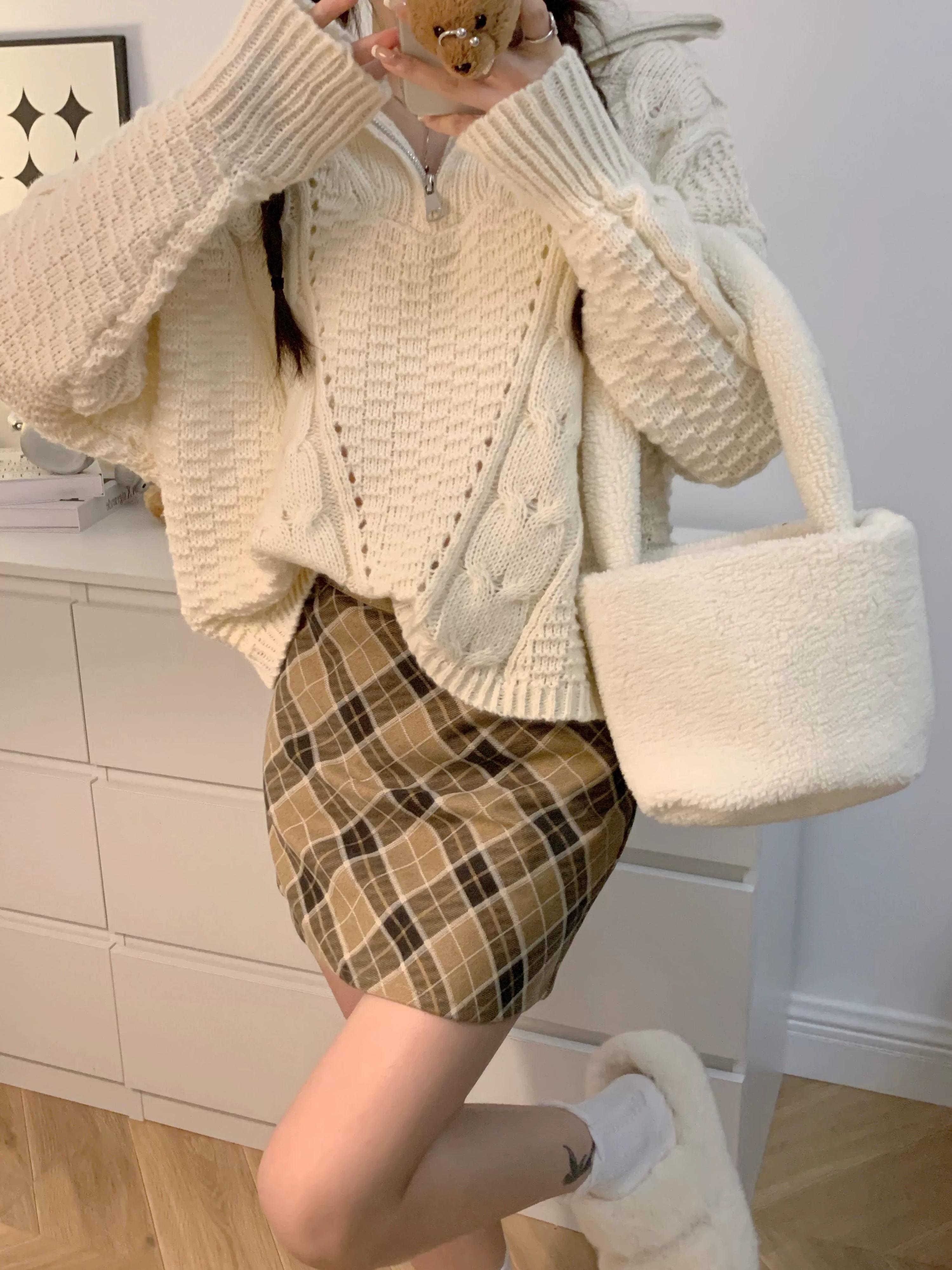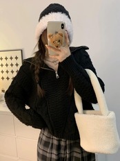 ハーフジッパーツイストセーター女性のニッチなデザインセンス2023春の新しい香港スタイルのシックな怠惰なショートトップ スプリング 春物 8571691823278306