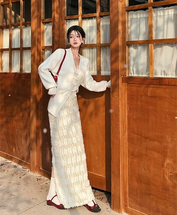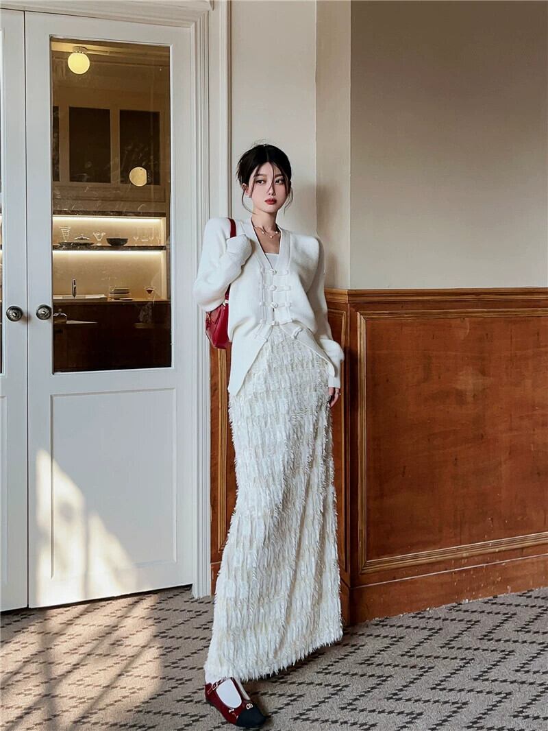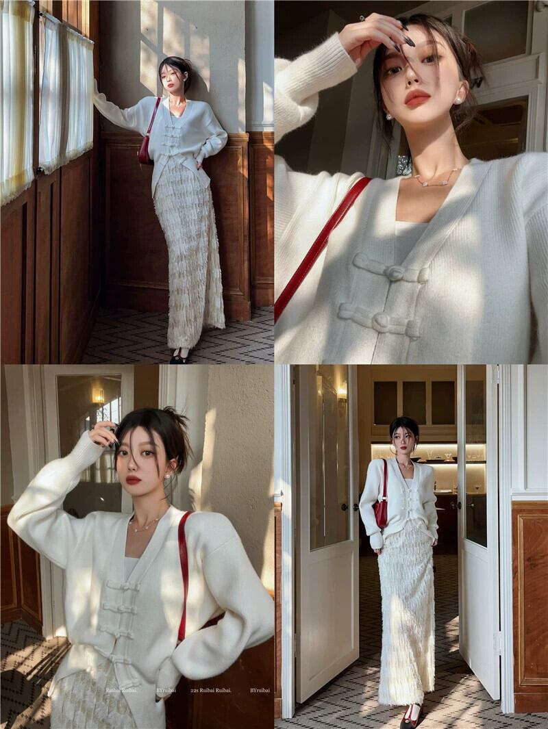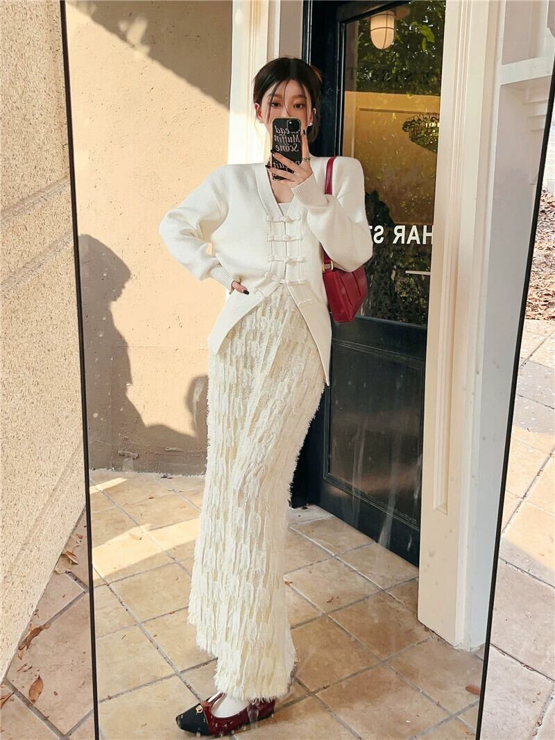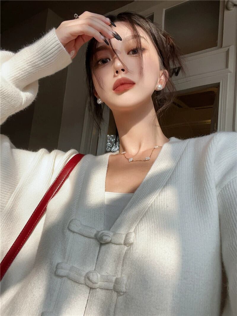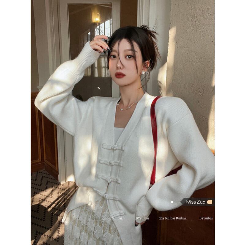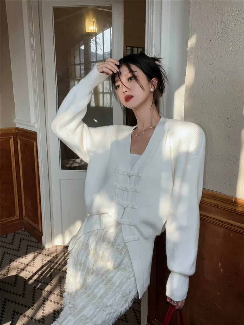 中国風セーターコート女性怠惰な高級感秋冬2023スタイルフレンチジェントルスタイルホワイトニットカーディガン オータム 秋物 ウィンター 冬物 8571640337903616