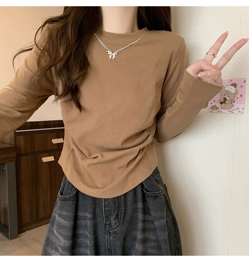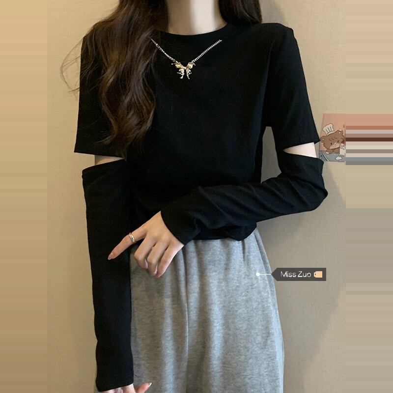 長袖Tシャツ婦人服デザインセンスニッチ秋ユニークシックスイートイレギュラーショートトップ服 ロング 大人ガーリー スウィート キュート カジュアル オータム 秋物 8571612125699708