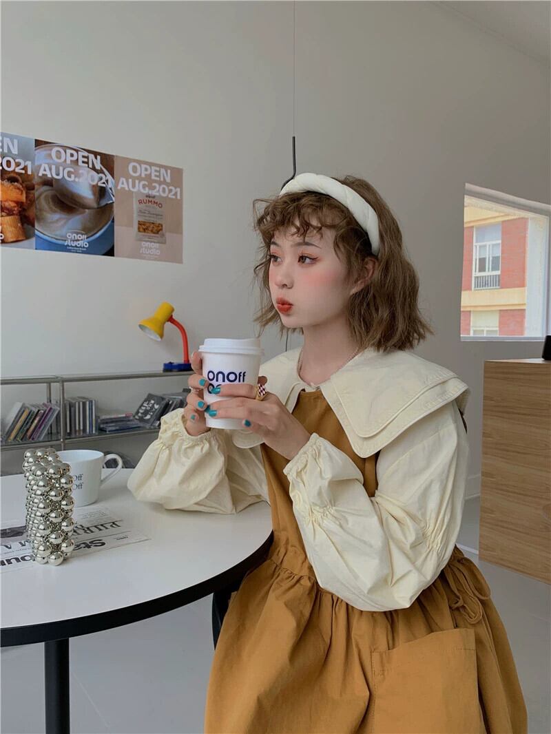 色:アプリコットシャツ,コーヒーシャツ,黄色のスカート,黒スカート