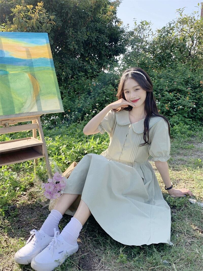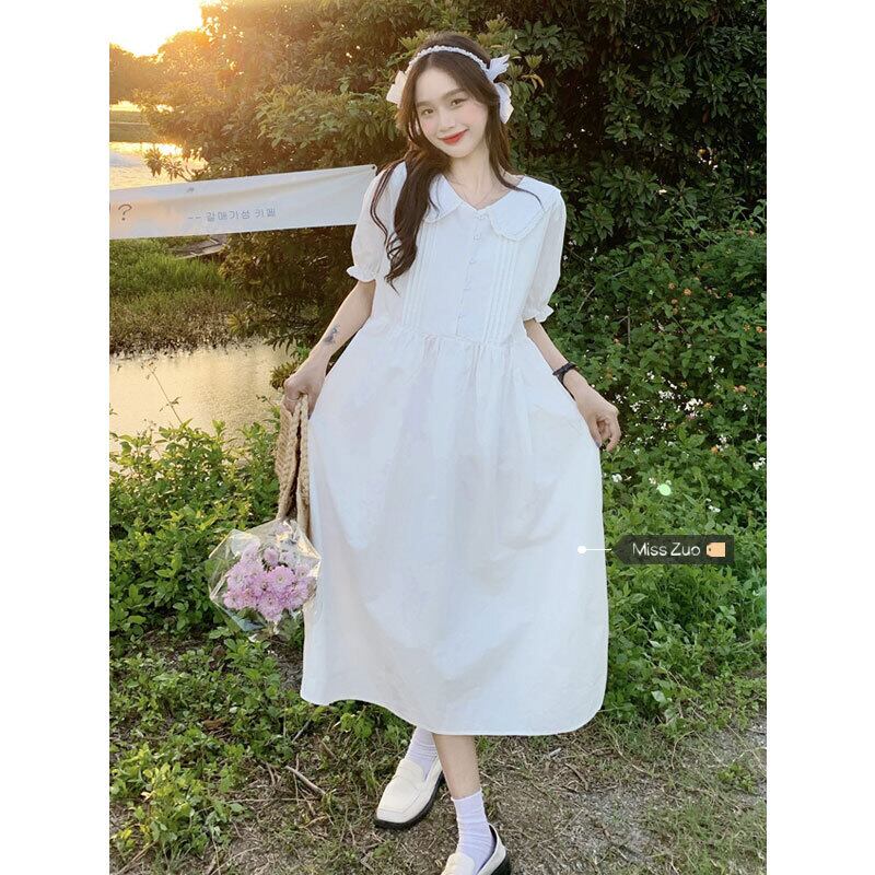ホワイトドールカラードレス女性の夏の2023新しいフレンチスタイルの優しい風初恋カバー腹と年齢削減ロングスカート サマー 夏物 8571653390960767
