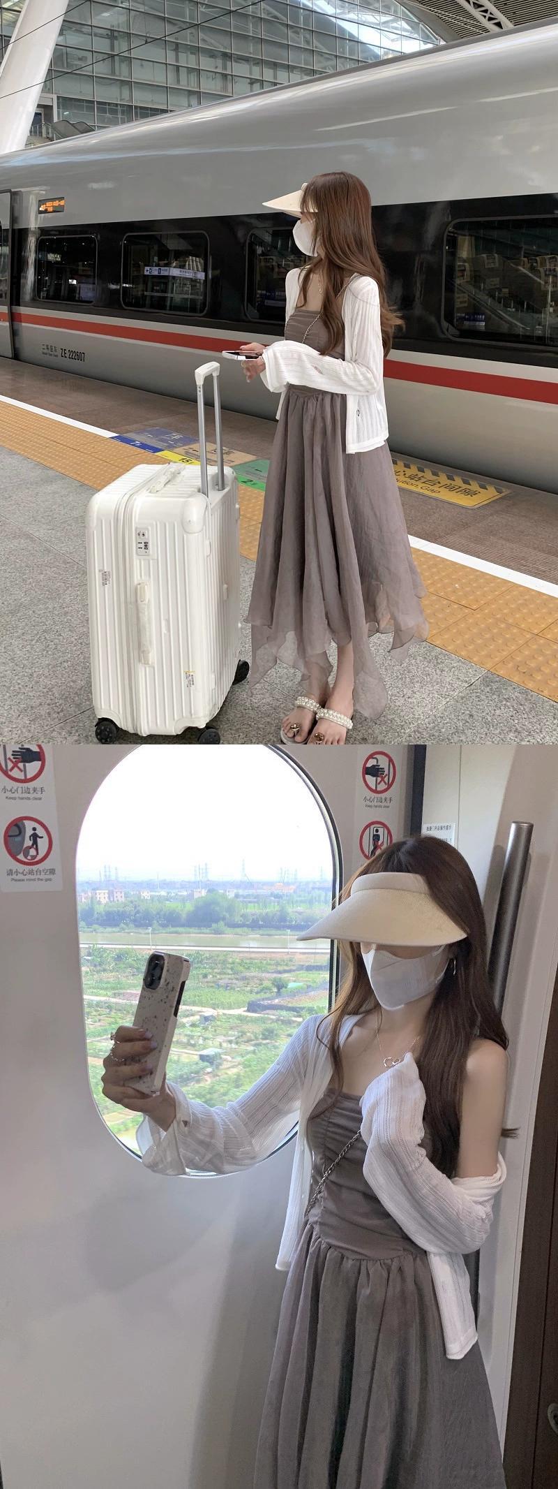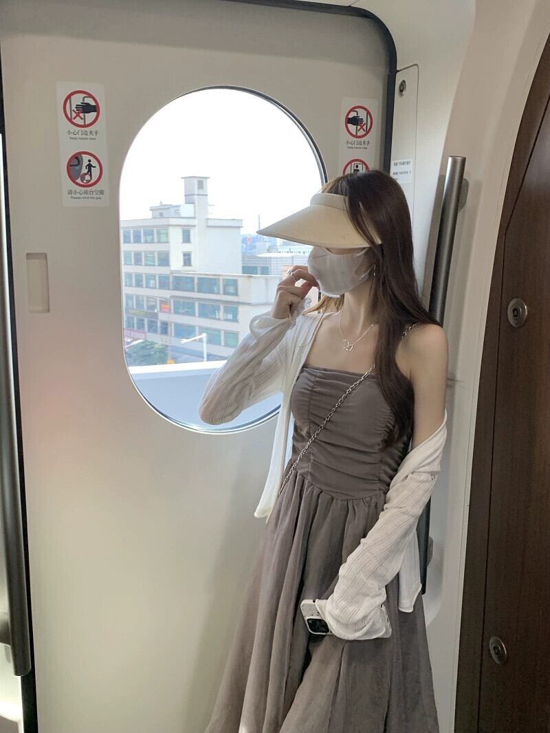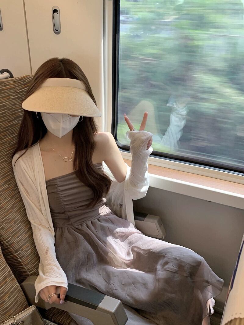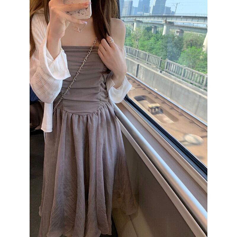 グレーのチューブトップドレス女性の夏 2023 新しいニッチデザイン優しい風不規則な休日のロングスカート サマー 夏物 8571662001353265