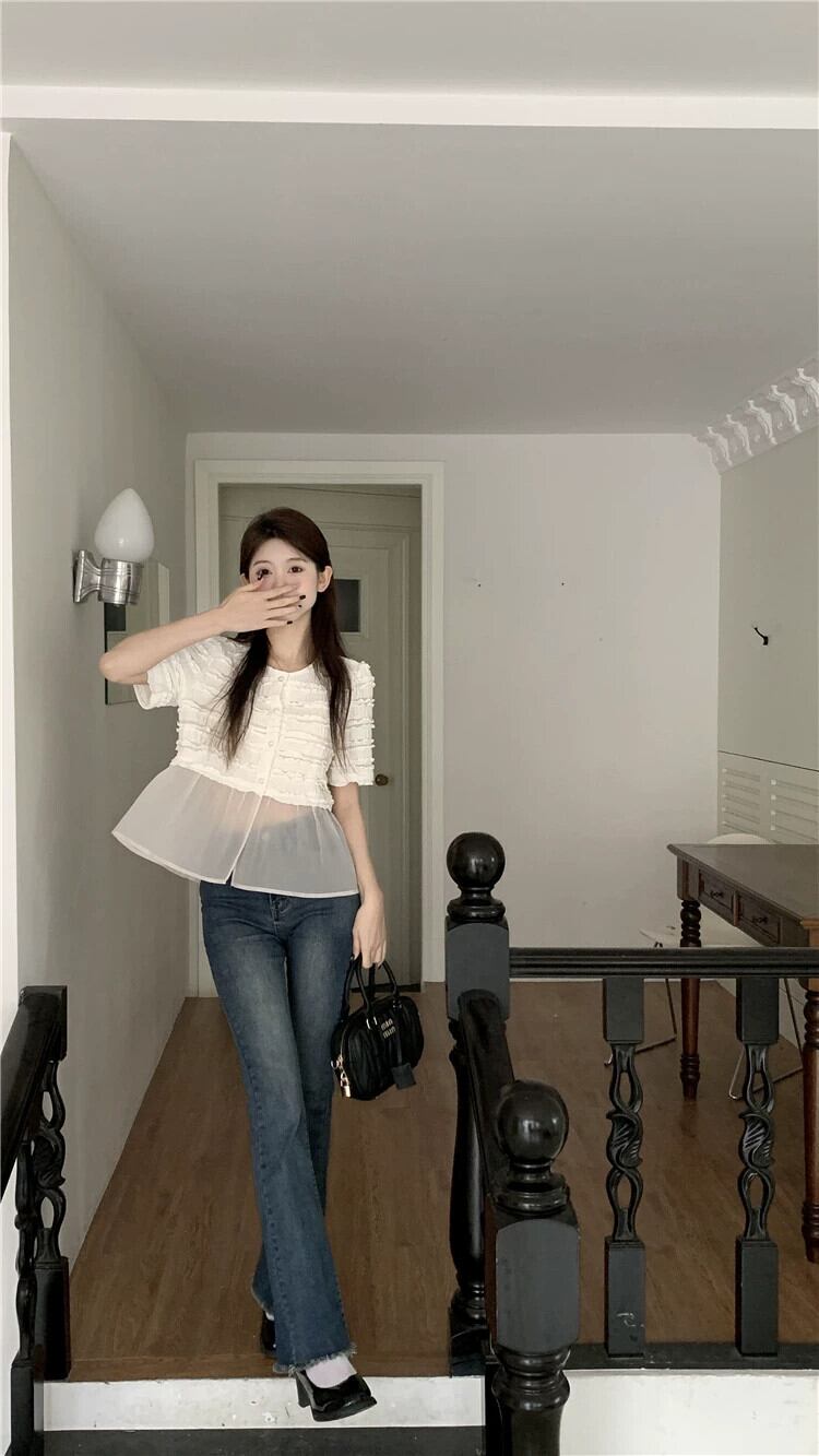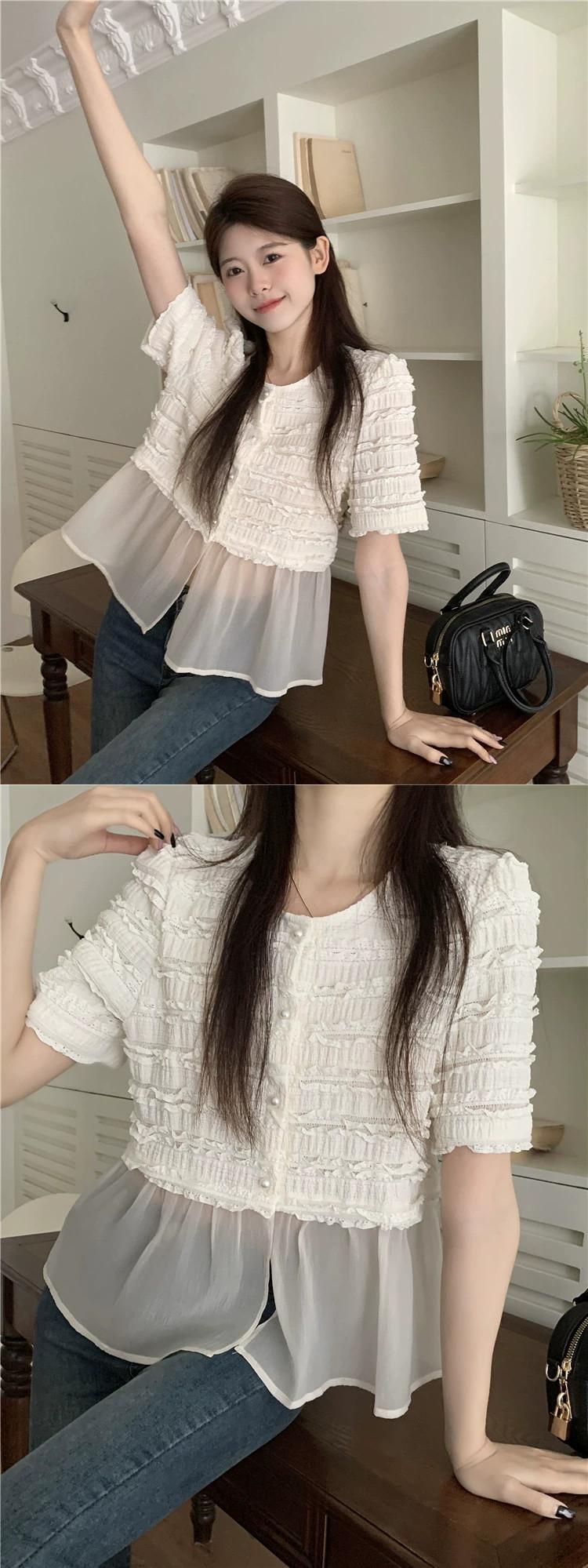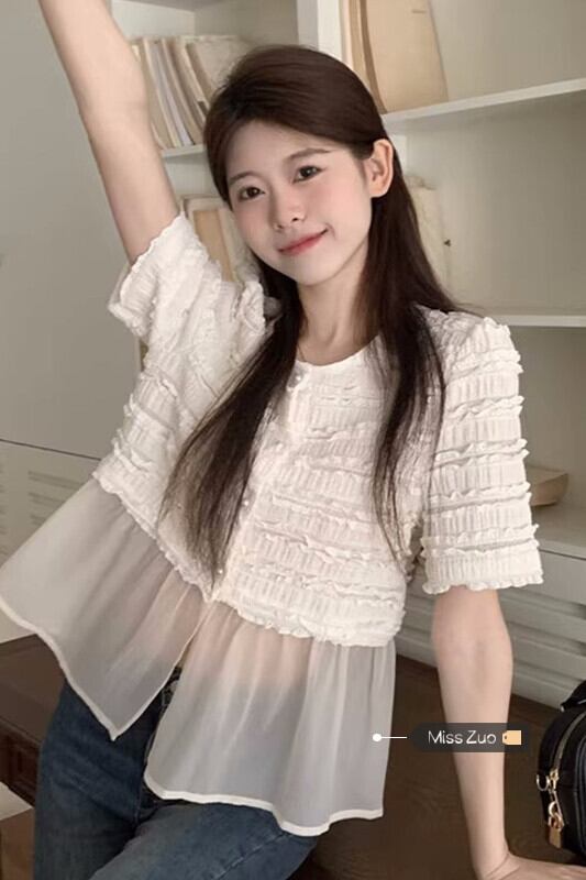 Xiaoxiangfeng スーパーフェアリートップ女性の夏のデザインセンスニッチ 2023 新しいフランスの甘くて優しい半袖シャツ 大人ガーリー スウィート キュート カジュアル サマー 夏物 8571660906144579