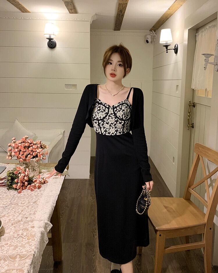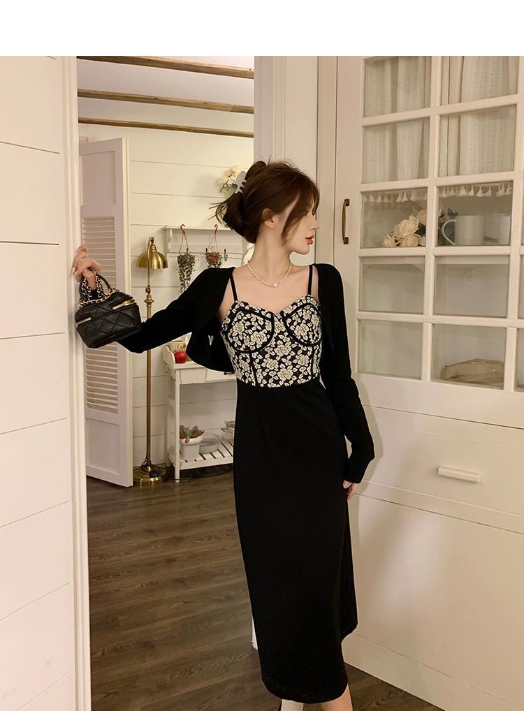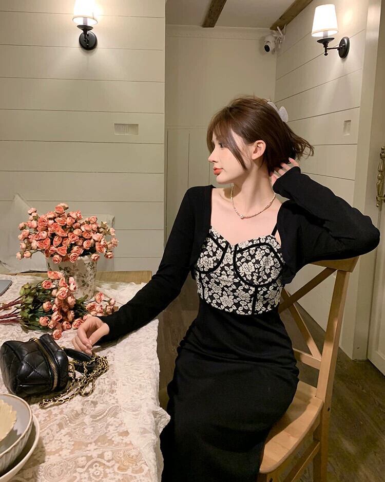 スリングドレス女性 2023 春の新作今年人気の香港スタイルのレトロシックなスリットスカート スプリング 春物 8571636849930762
