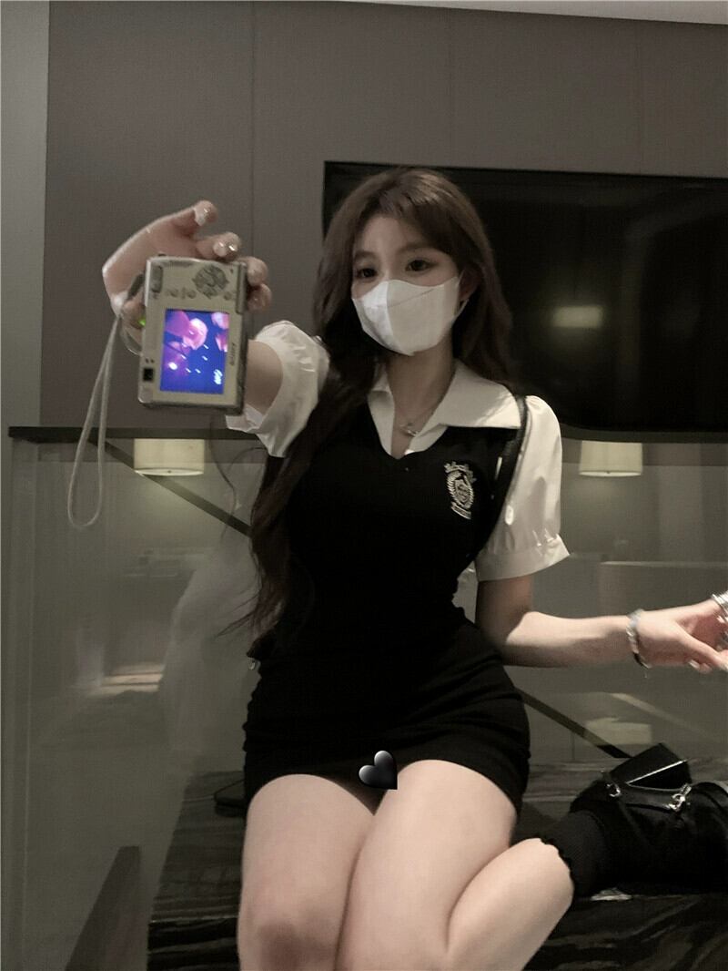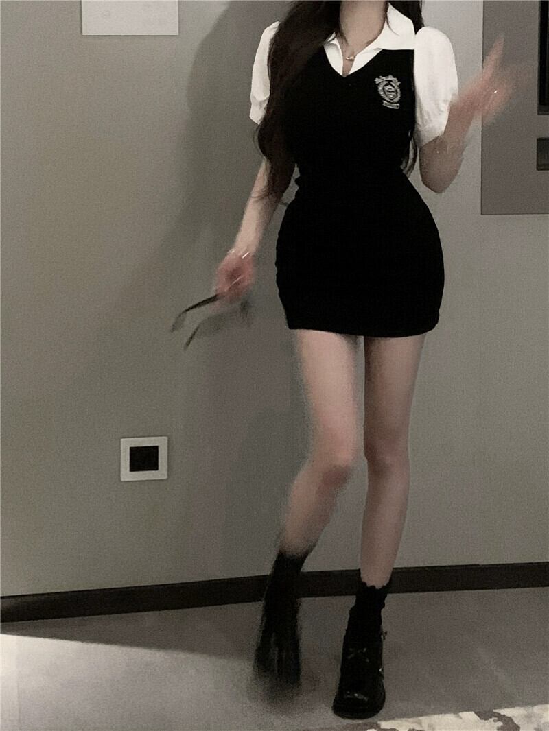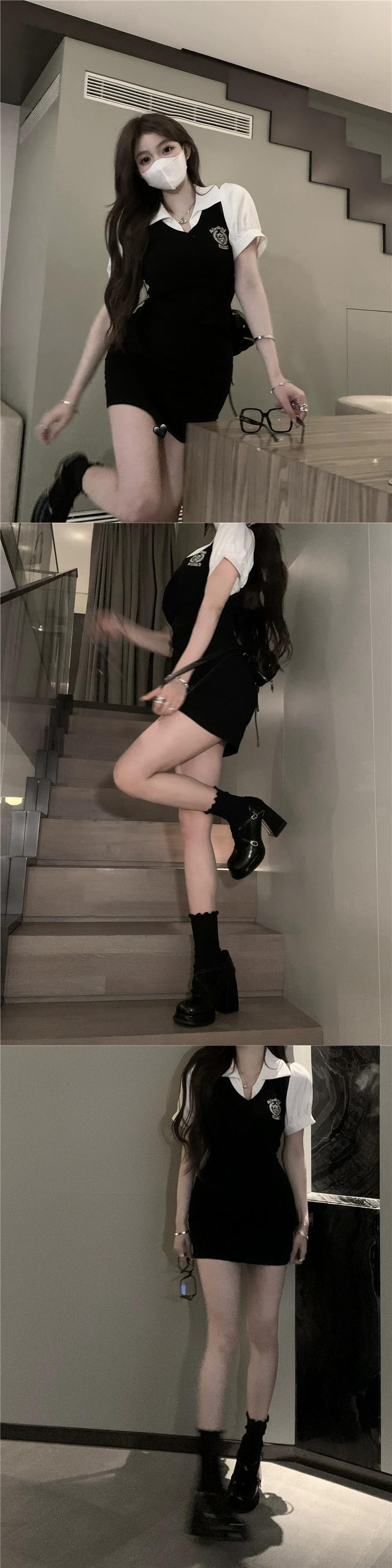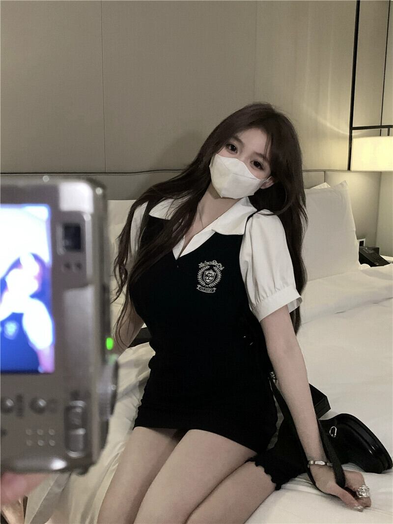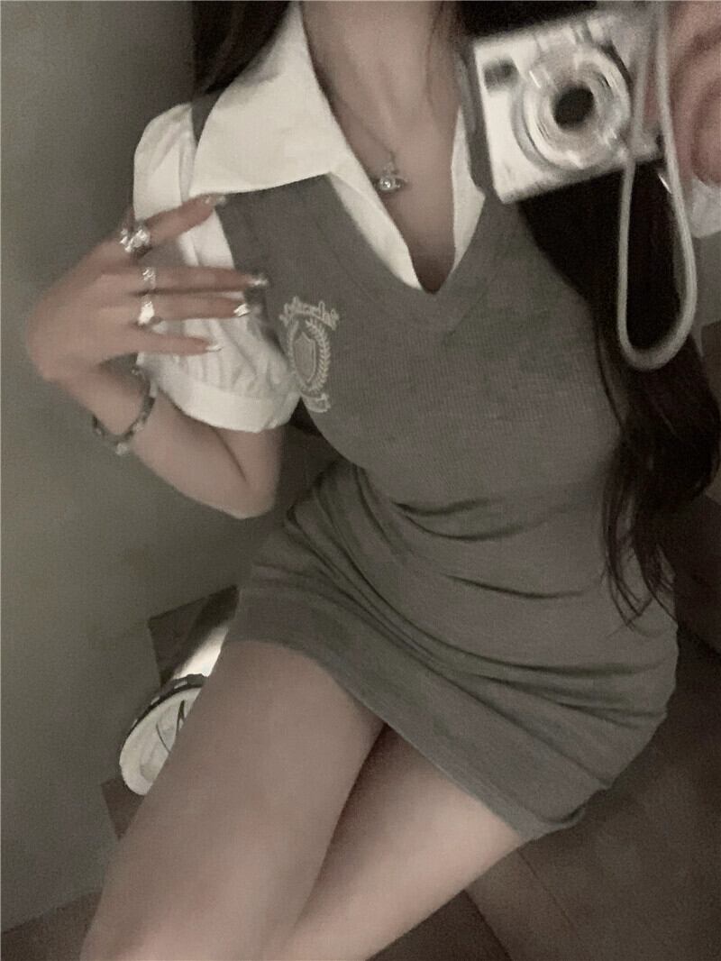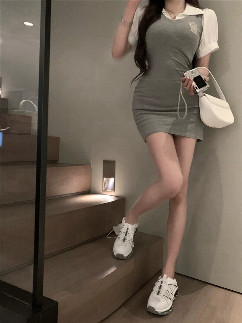 グレー偽ツーピースドレス女性の夏 2023 新しい純粋な欲望レトロ気質自己修養バッグヒップショートスカート サマー 夏物 ピュア 857166887840089
