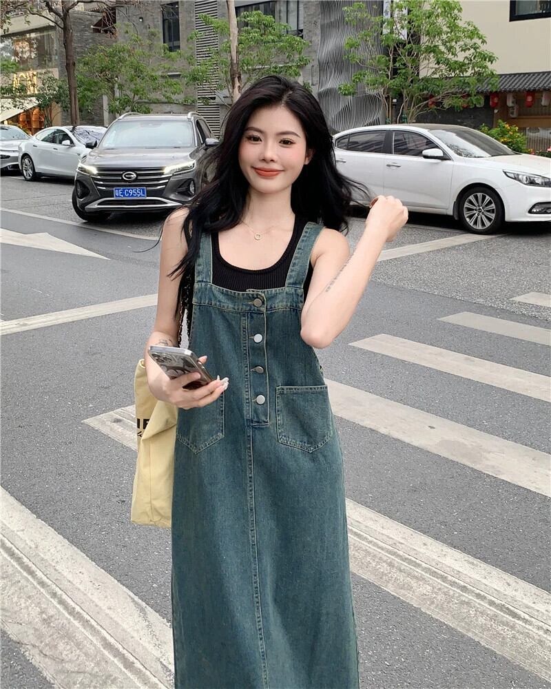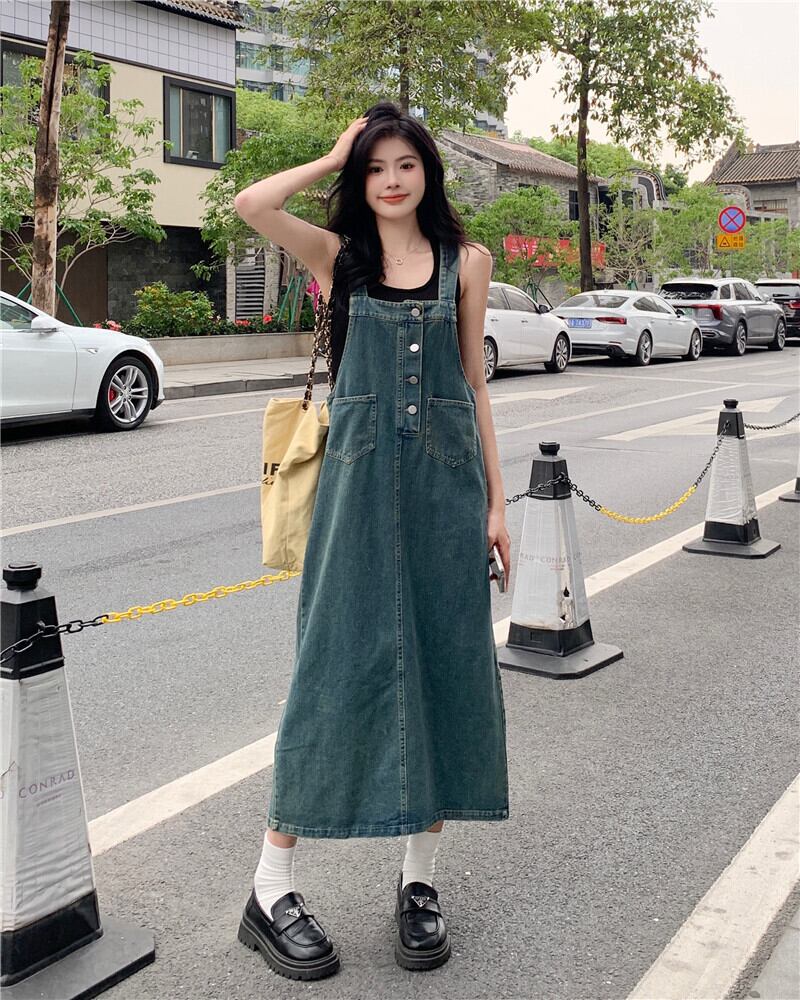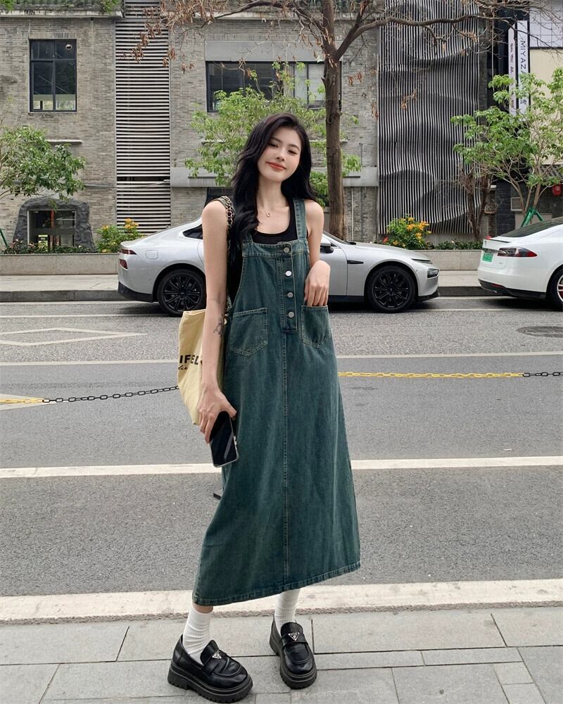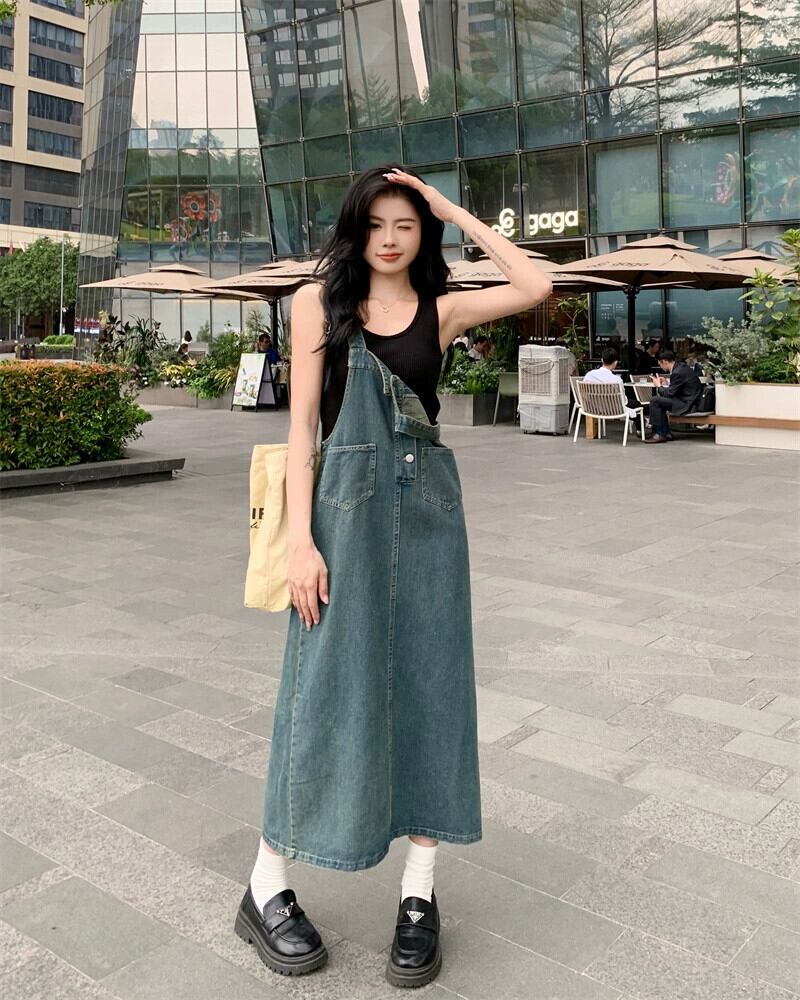 初恋デニムサスペンダードレス女性の夏の2023新しいフランスの気質今年人気爆発スタイルのロングスカート サマー 夏物 8571647538877920