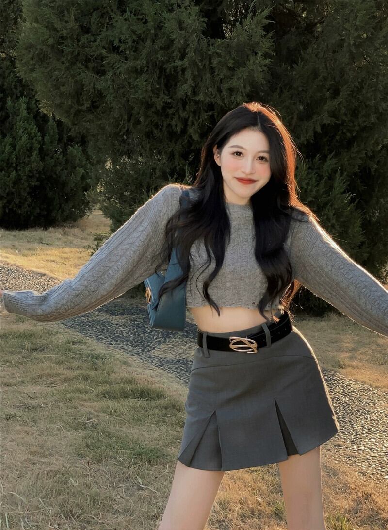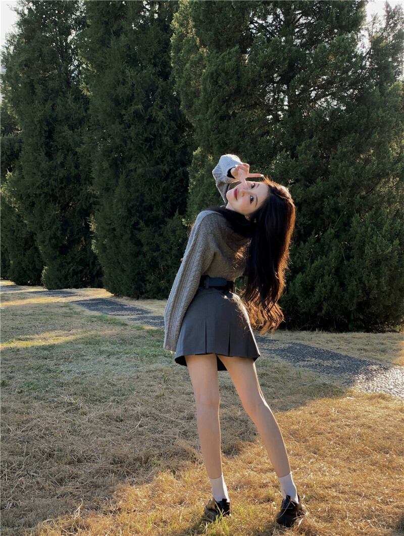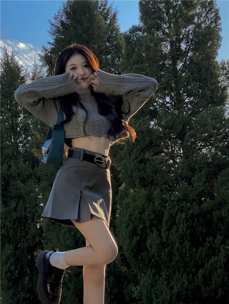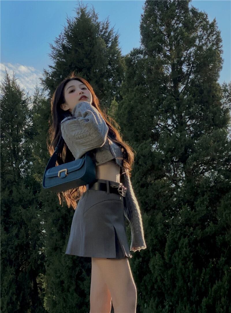 グレースーツスカートレディースハイウエストAラインプリーツスカート春デザイン感ニッチ小バッグヒップショートスカート ハイウェスト スプリング 春物 8571683365335102