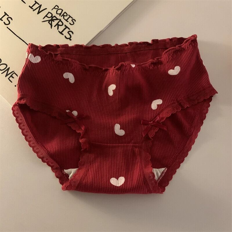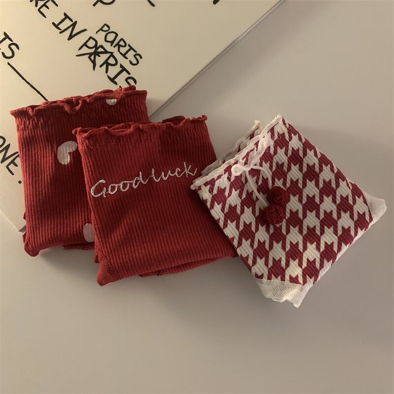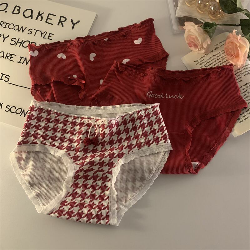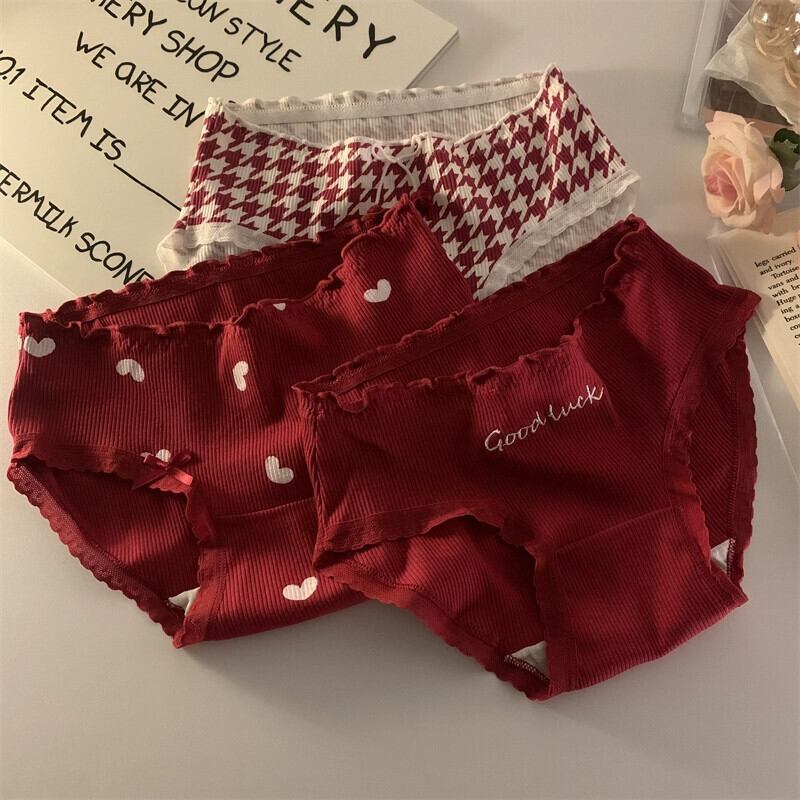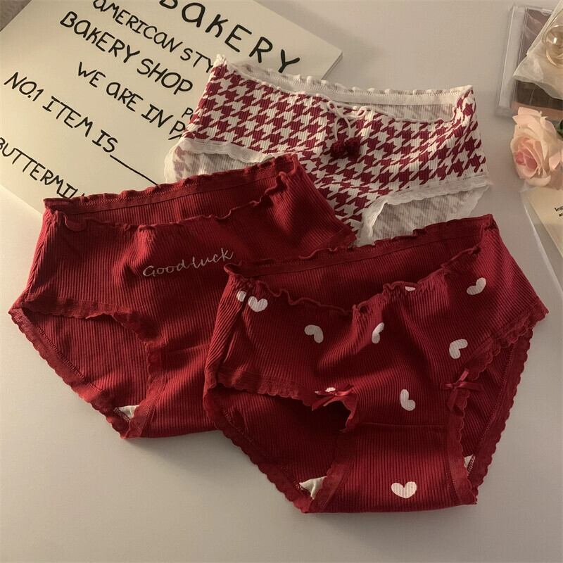 干支年レッド下着女性の純粋な綿抗菌通気性甘い学生かわいいシームレスなミッドウエストブリーフ コットン 大人ガーリー スウィート キュート カジュアル ピュア 8571674904905595