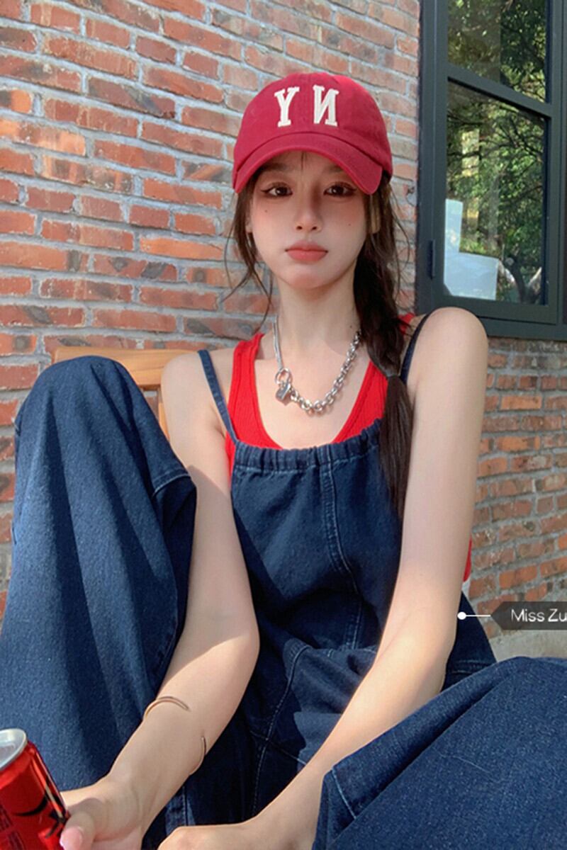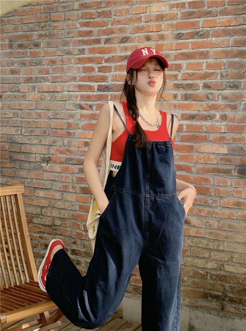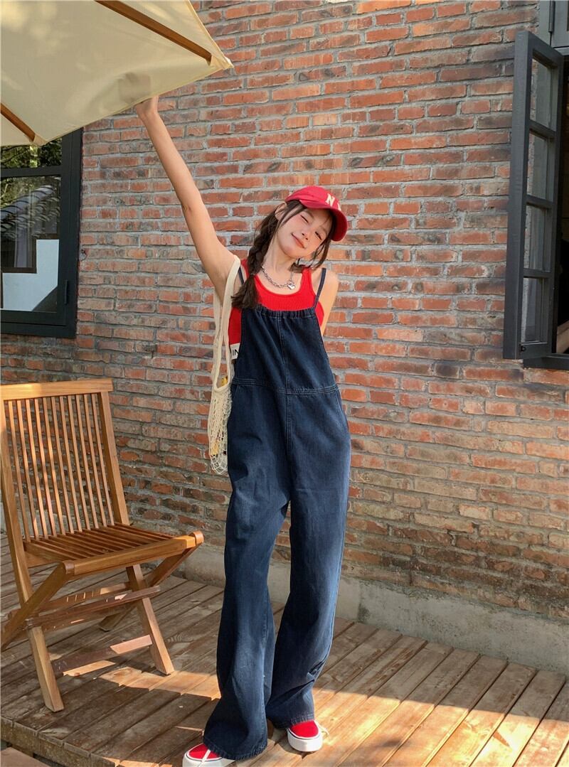 デニムオーバーオールレディースバージョン緩い夏2023新年齢を軽減する小さなデザイン感覚のモップワイドレッグパンツ サマー 夏物 8571679492553499
