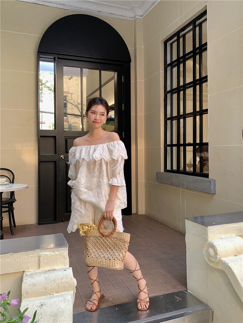 半袖シャツ女性の小さなデザインセンスニッチシャツ夏甘いフリルワンショルダートップ2点セット 大人ガーリー スウィート キュート カジュアル サマー 夏物 8571684572323448