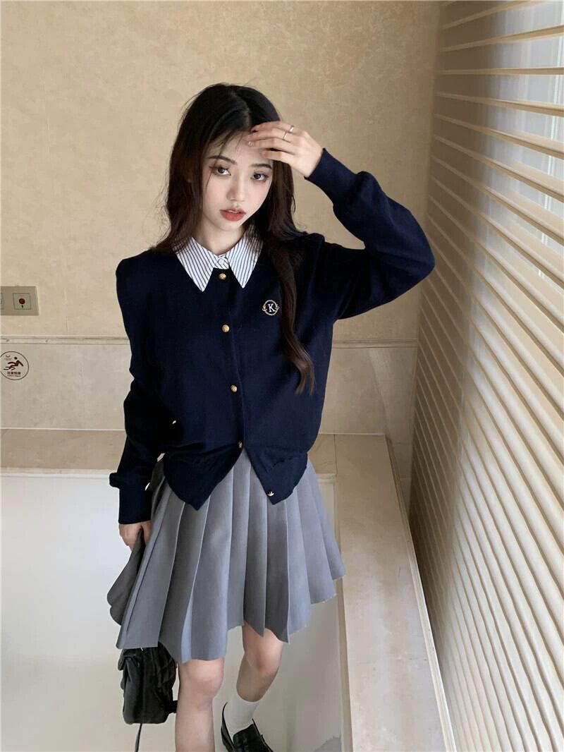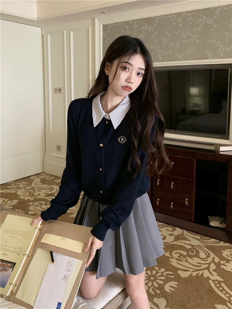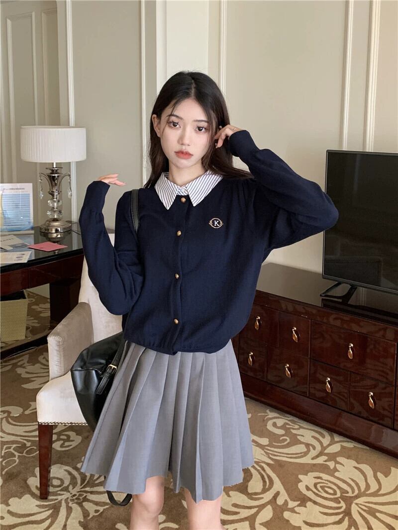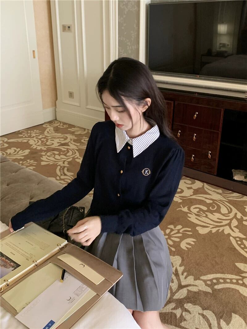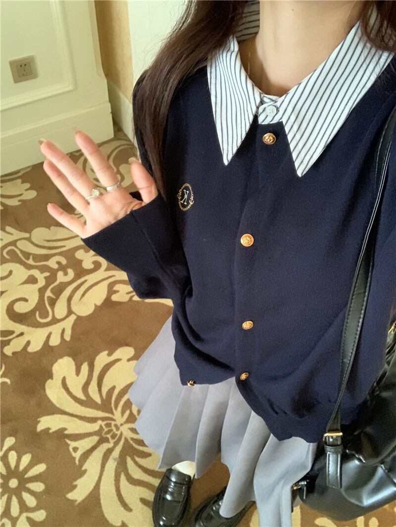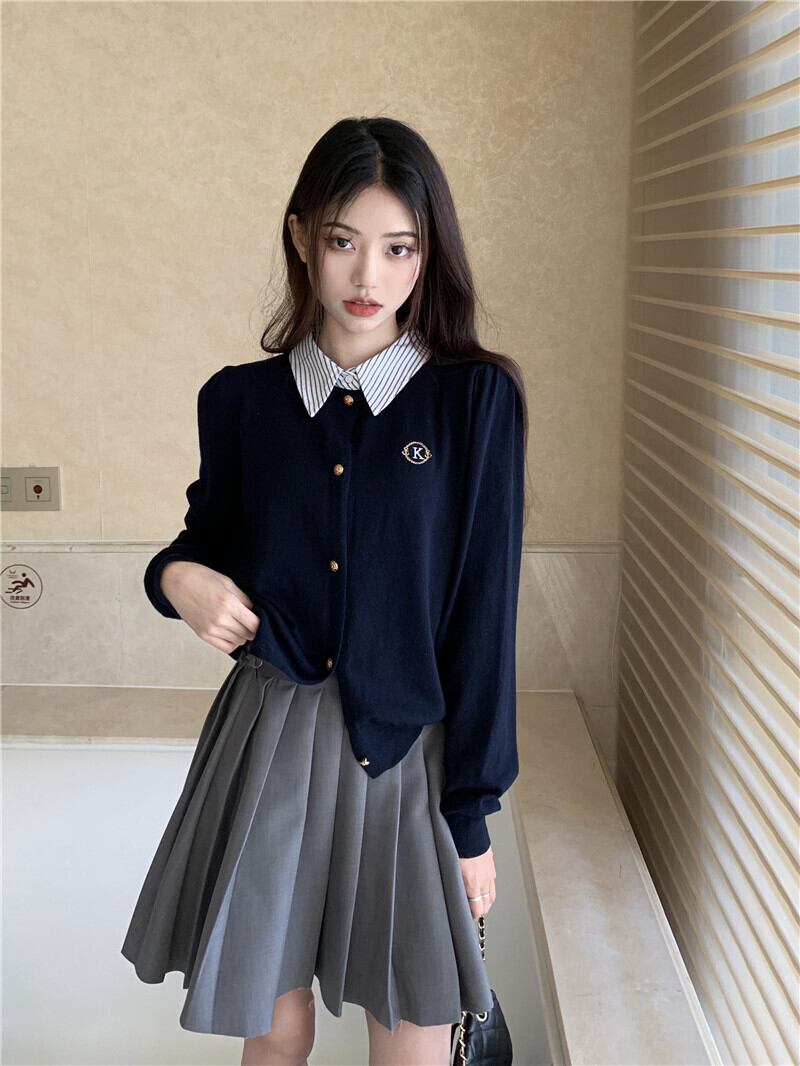 スタイルニットカーディガン婦人服デザインセンスニッチ春2023新しいユニークな超格好良い偽ツーピーストップ スプリング 春物 8571669800825385