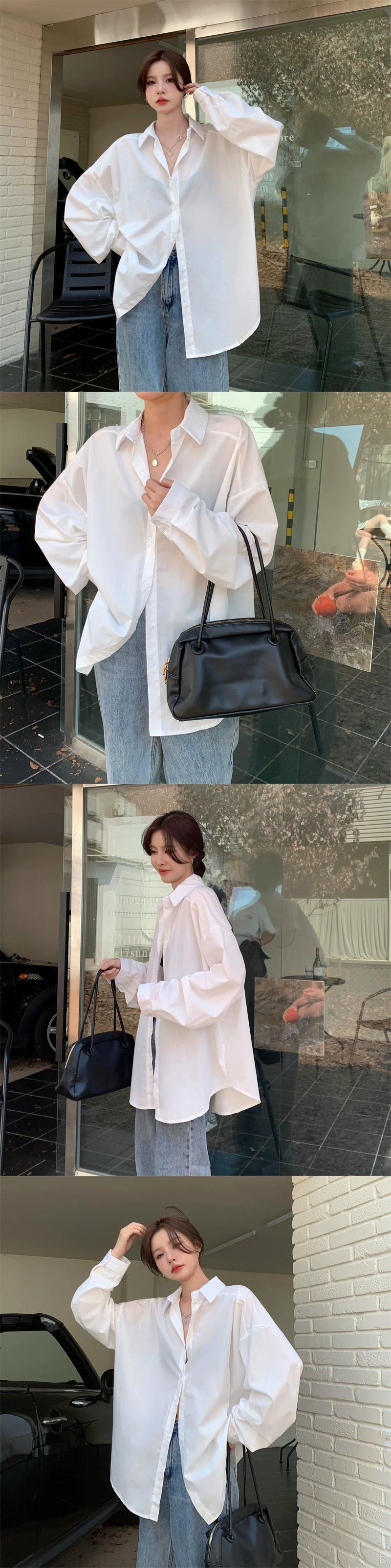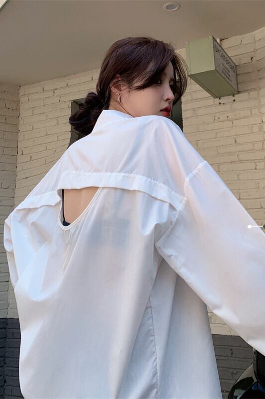 白シャツジャケット女性デザインセンスニッチオープンバックシャツ春 2023 新しいレトロ香港スタイル長袖トップ ロング ホワイト スプリング 春物 8571621568179533