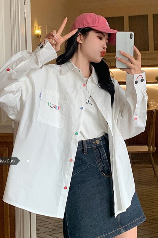 白いシャツジャケット女性のデザインセンスニッチオールマッチシャツ2023春の新しいeignスタイルシックな長袖トップ ロング ホワイト スプリング 春物 8571649310809958