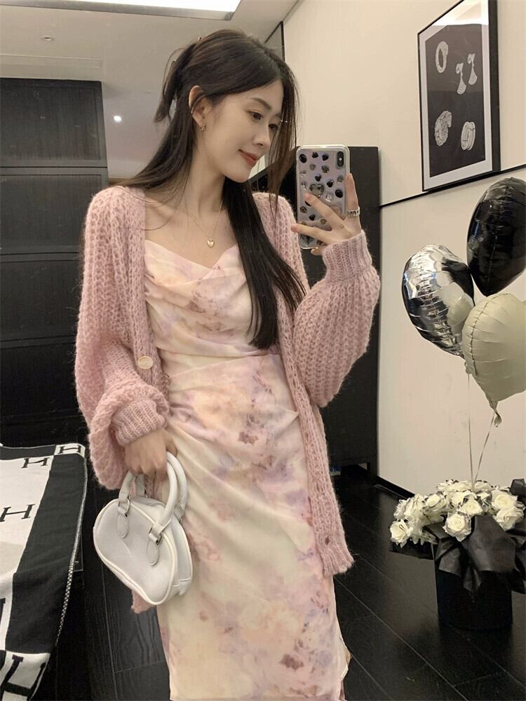 色:グリーンドレス80787#,ピンクのドレス80787#,グリーンセーター60088#,ピンクのセーター60088#