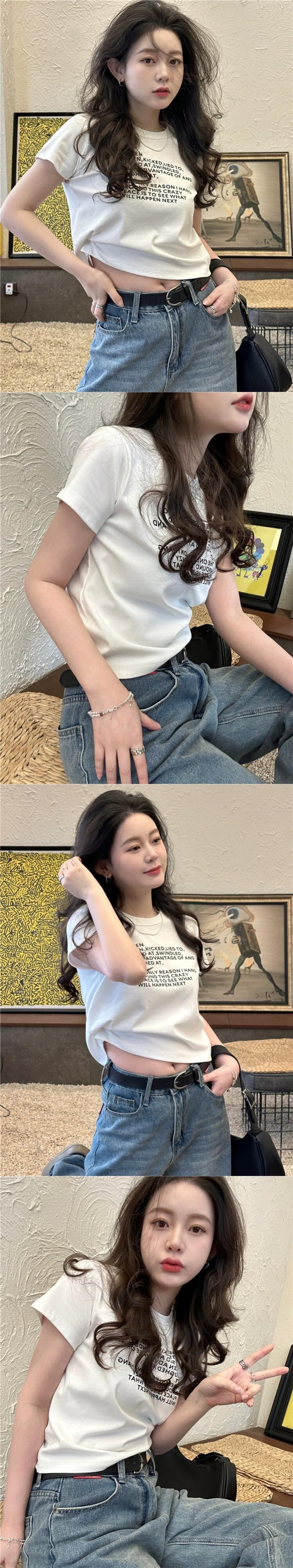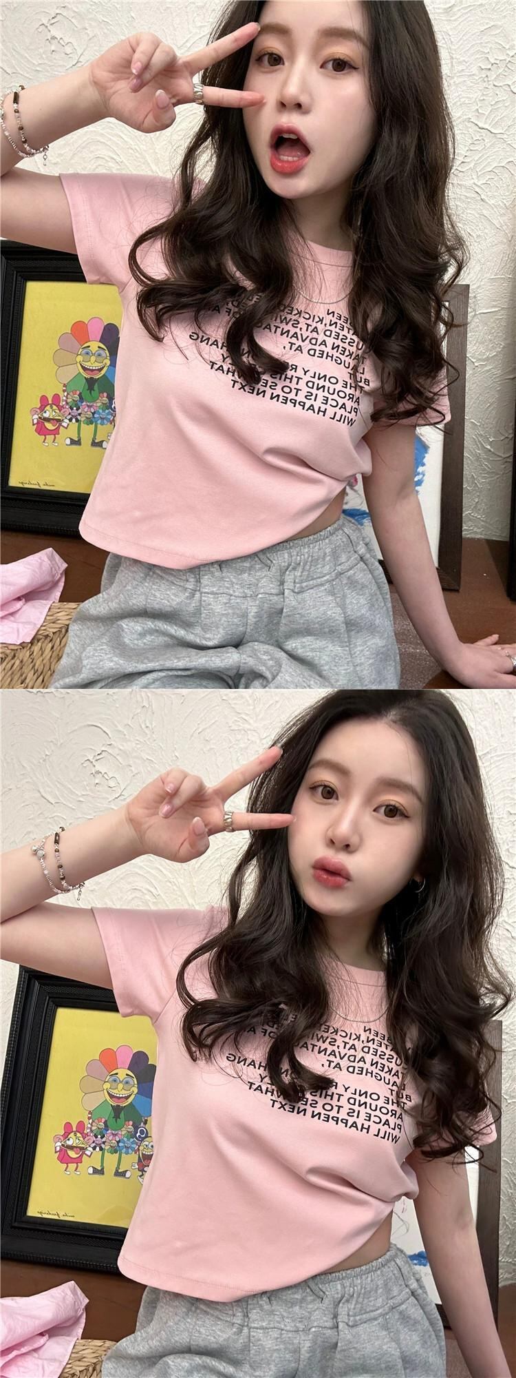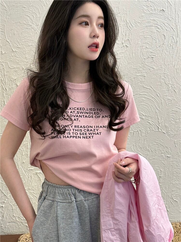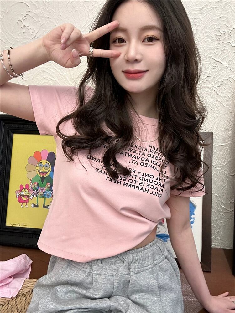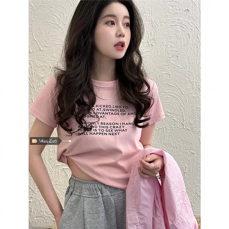 ピンクフロントショルダー半袖Tシャツレディース2023年夏新作人気スタイルシックショートショートトップ サマー 夏物 8571669445523426