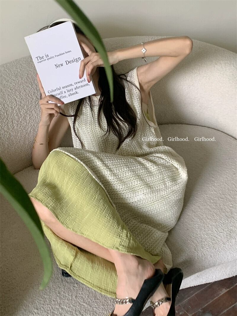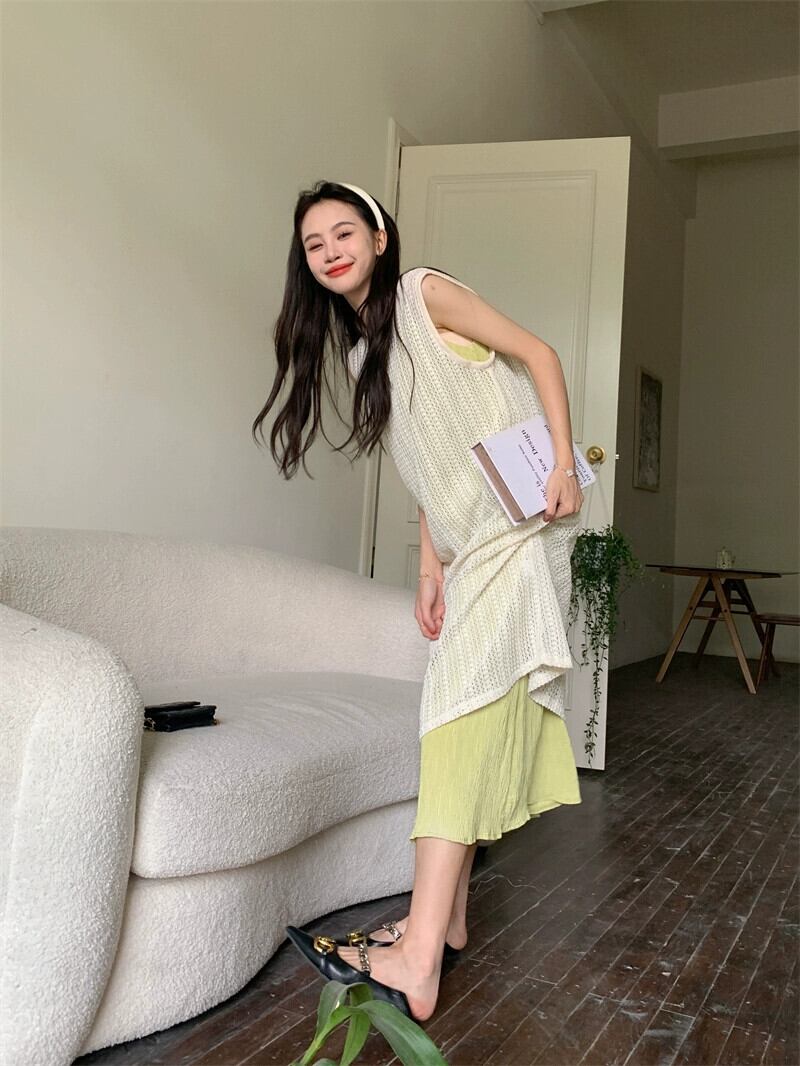 アプリコットブラウスベストドレス女性の夏の2023新しいレイヤードウェアデザインセンスニッチ小さな気質スカート レッド サマー 夏物 8571691821718083