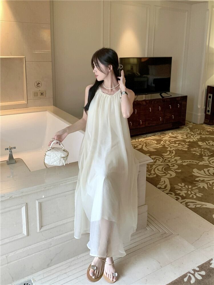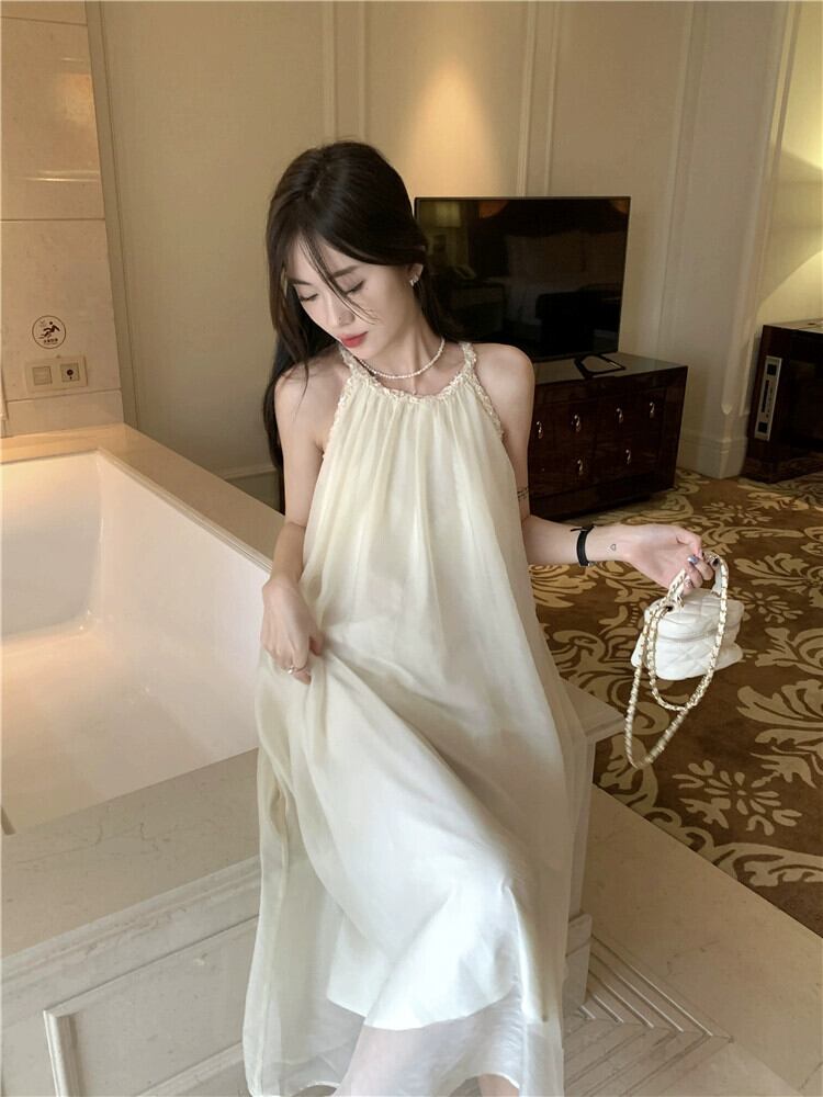 アプリコットサスペンダードレス女性の夏2023新しいフランスの初恋優しい風海辺の休日スーパーフェアリーロングスカート サマー 夏物 8571695321034326